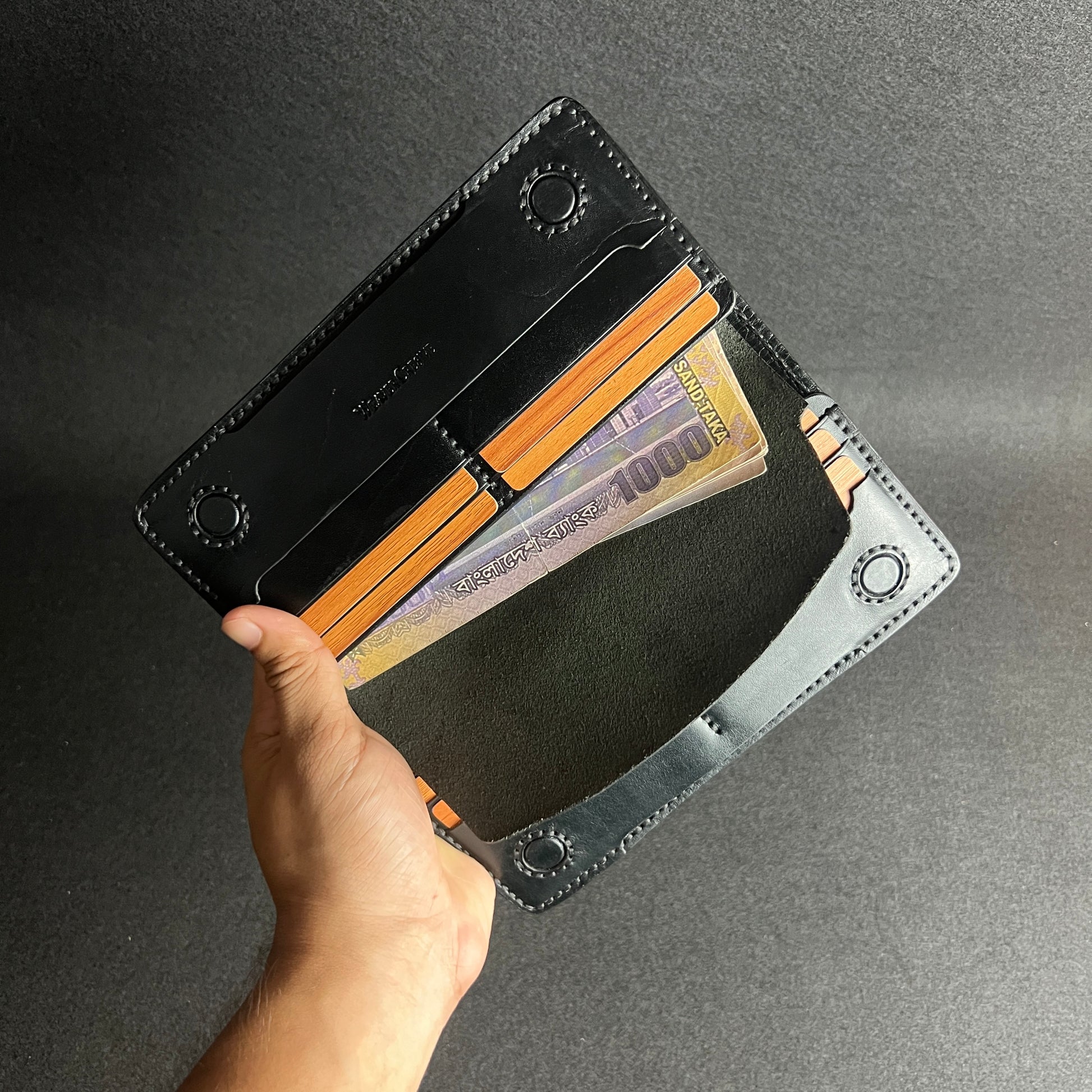 "Customize Your Wallet: Choose you preferred leather type, color, and thread options from our available stock"