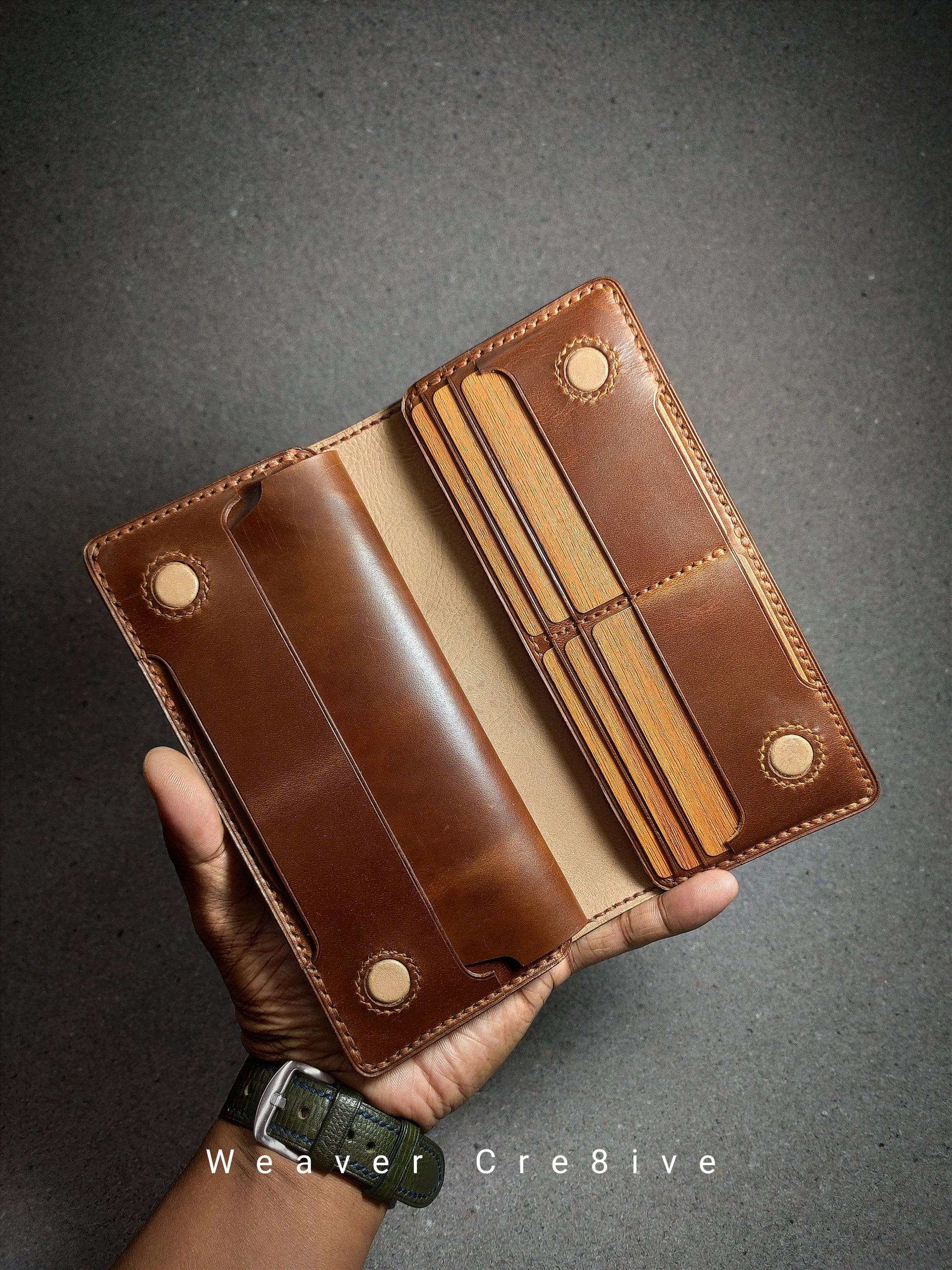 Elvra is a long wallet built for those who move with purpose, yet refuse to compromise on elegance. Every inch of it speaks of care: from the rich grain of vegetable-tanned leather to the rhythmic balance of form and function.