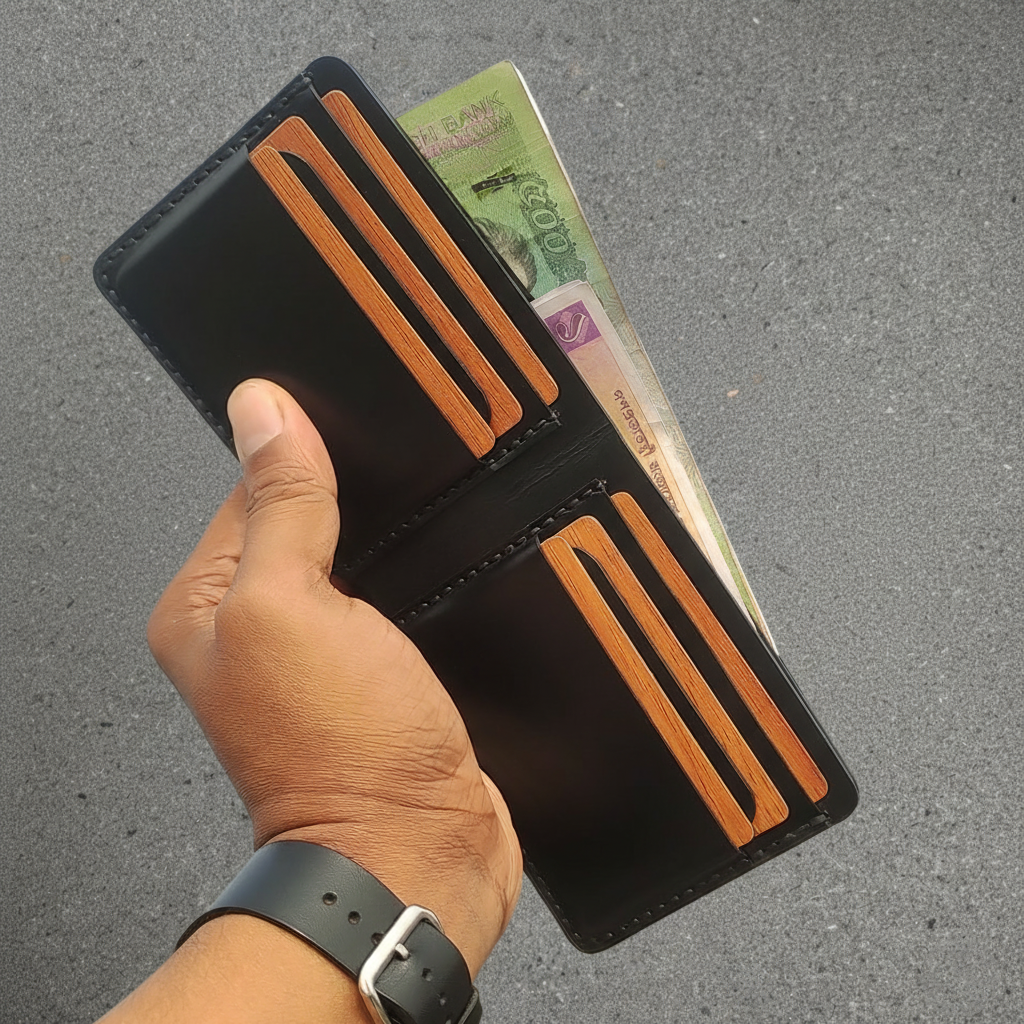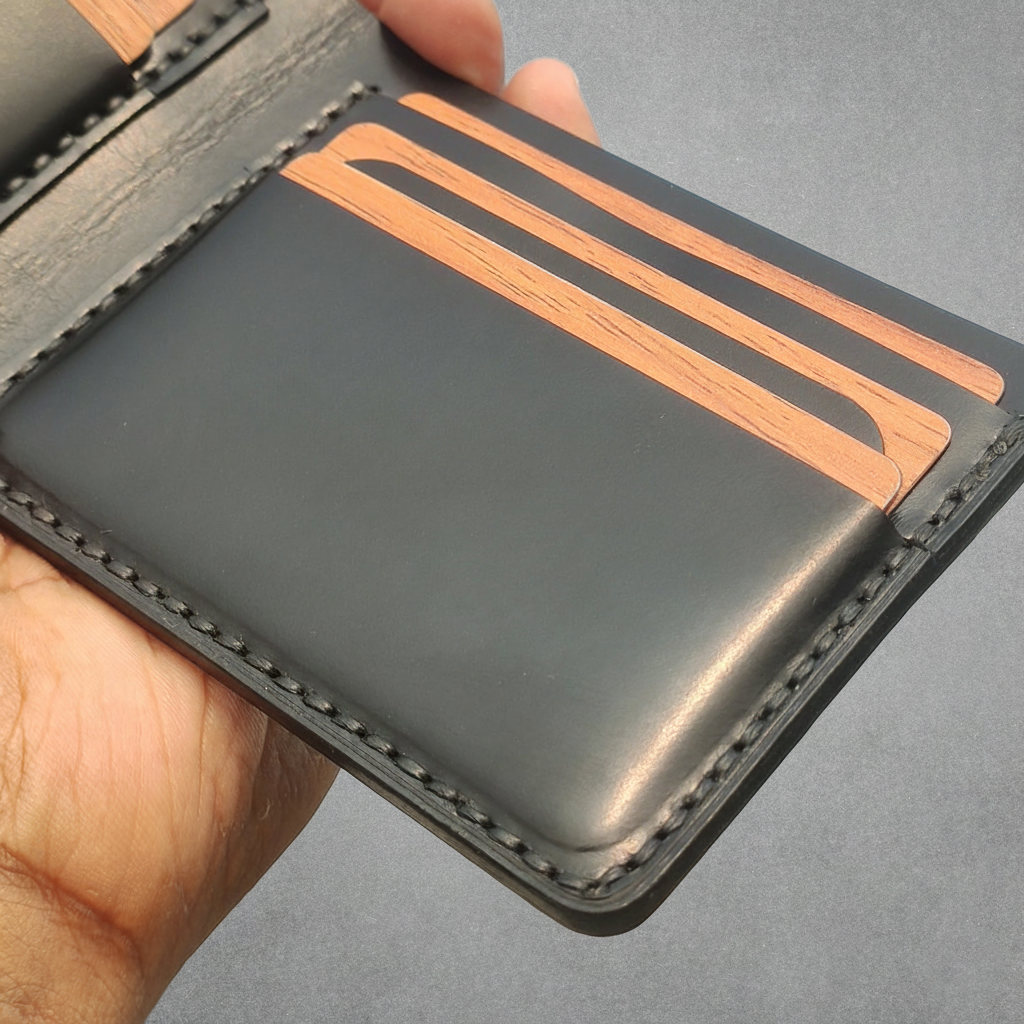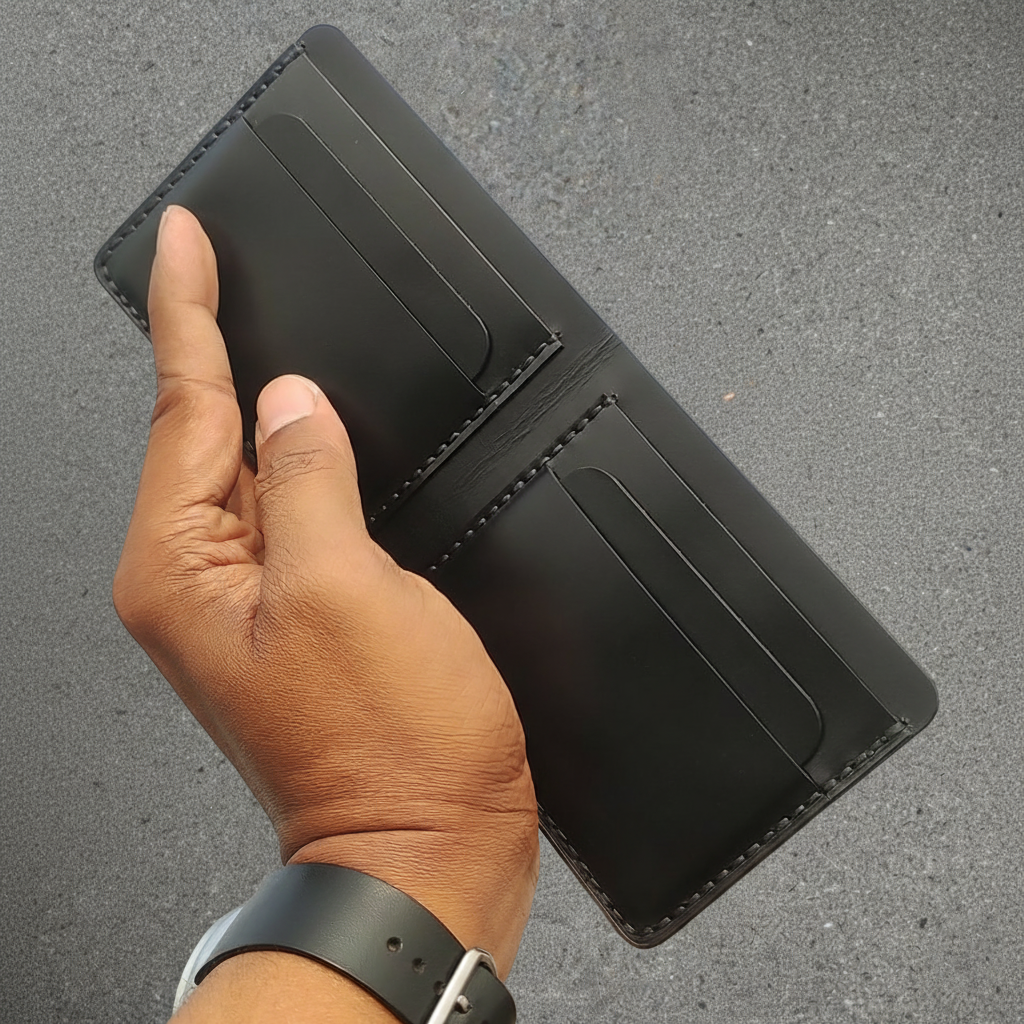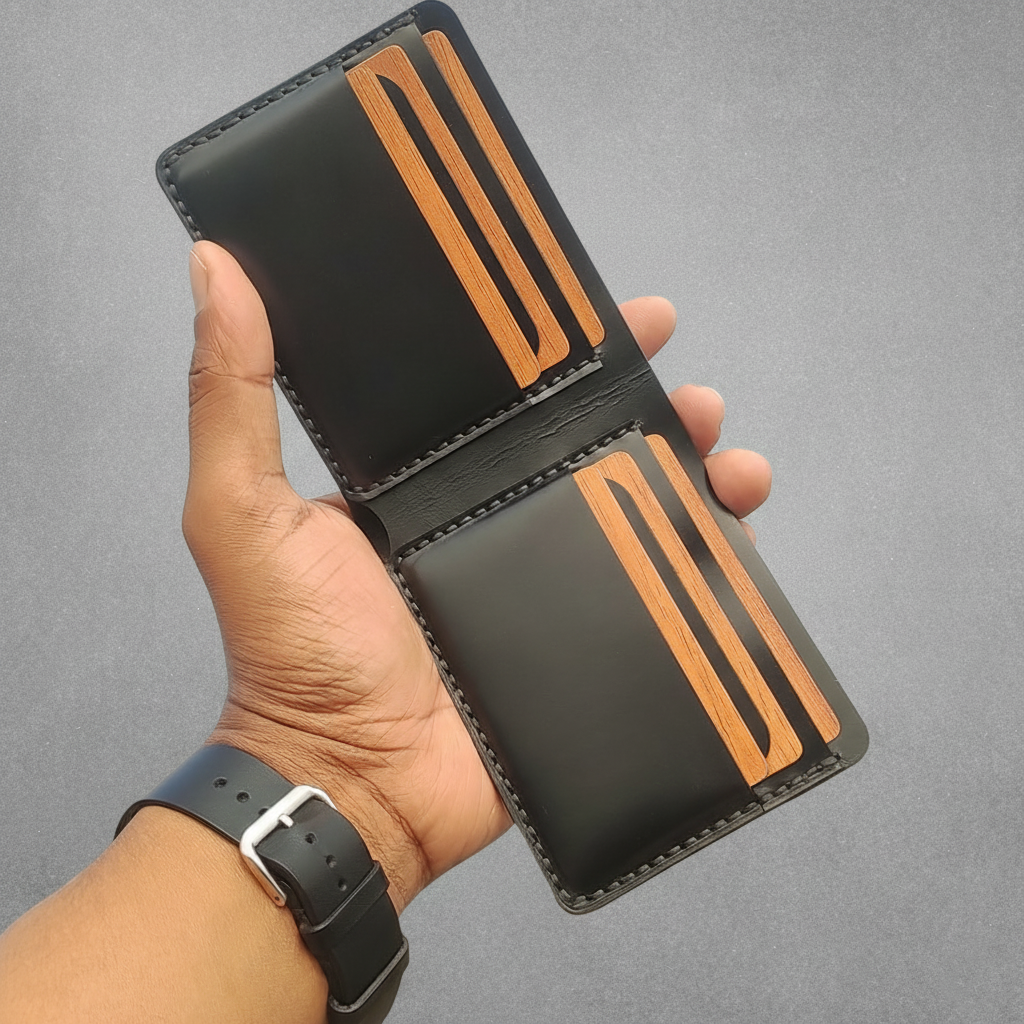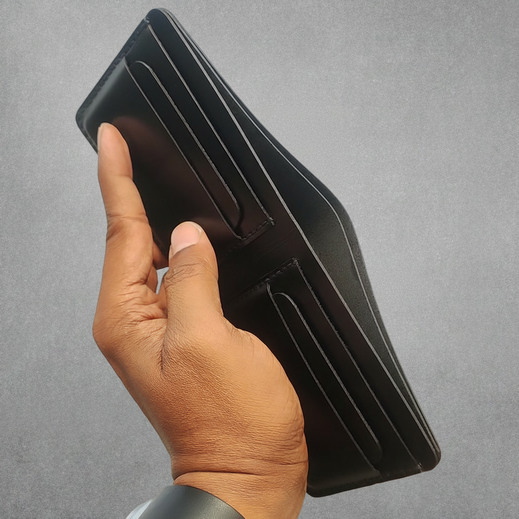 "Customize Your Wallet: Choose you preferred leather type, color, and thread options from our available stock"