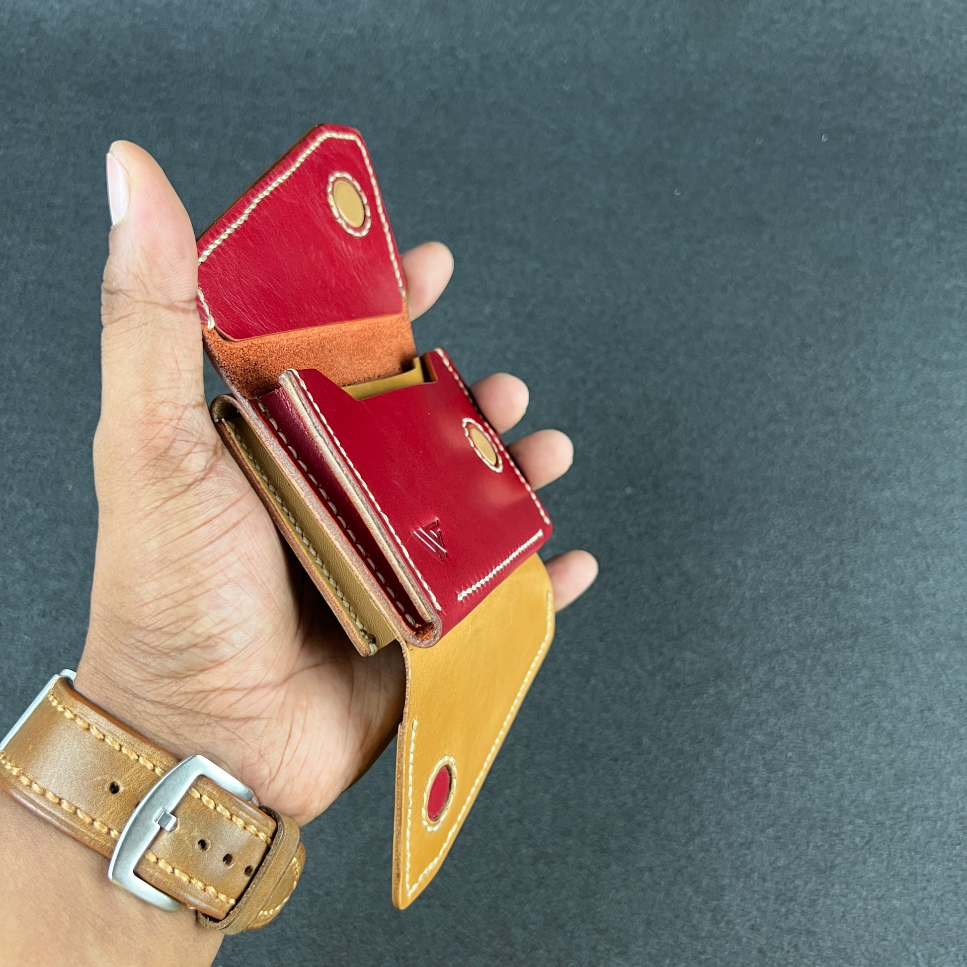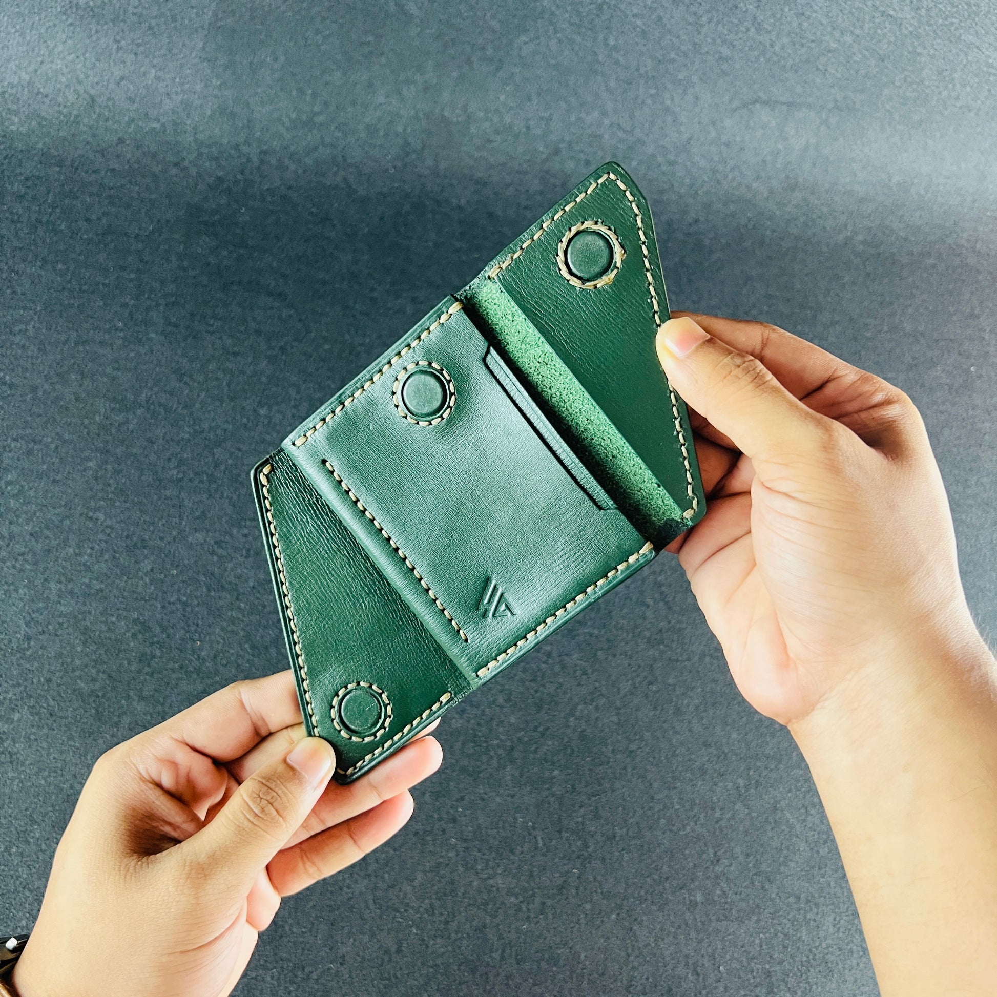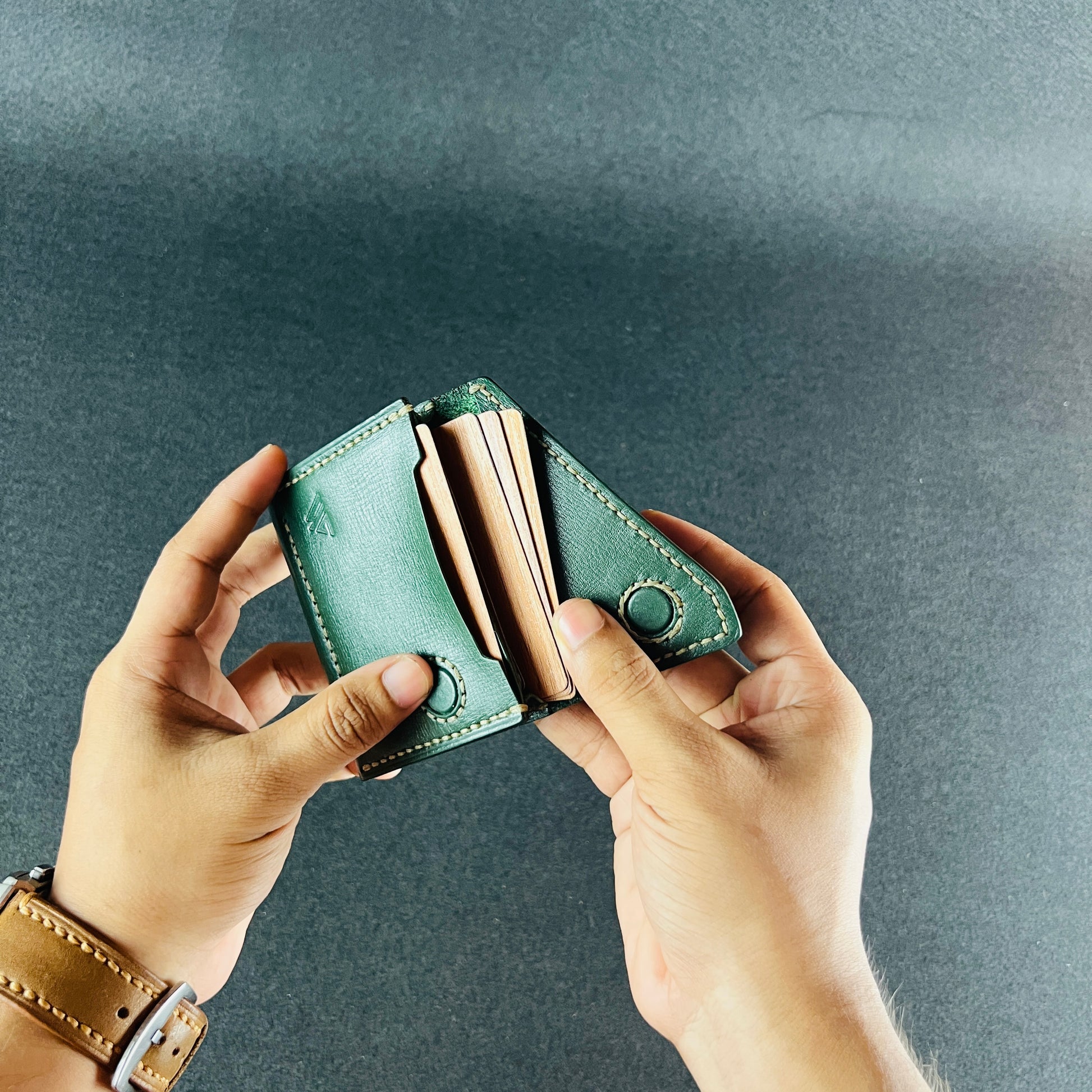 Compact in form yet surprisingly capacious inside, it opens like a folded leaf revealing structure, precision, and a sense of quiet control. Built for cards, minimal cash, and those who carry only what matters.