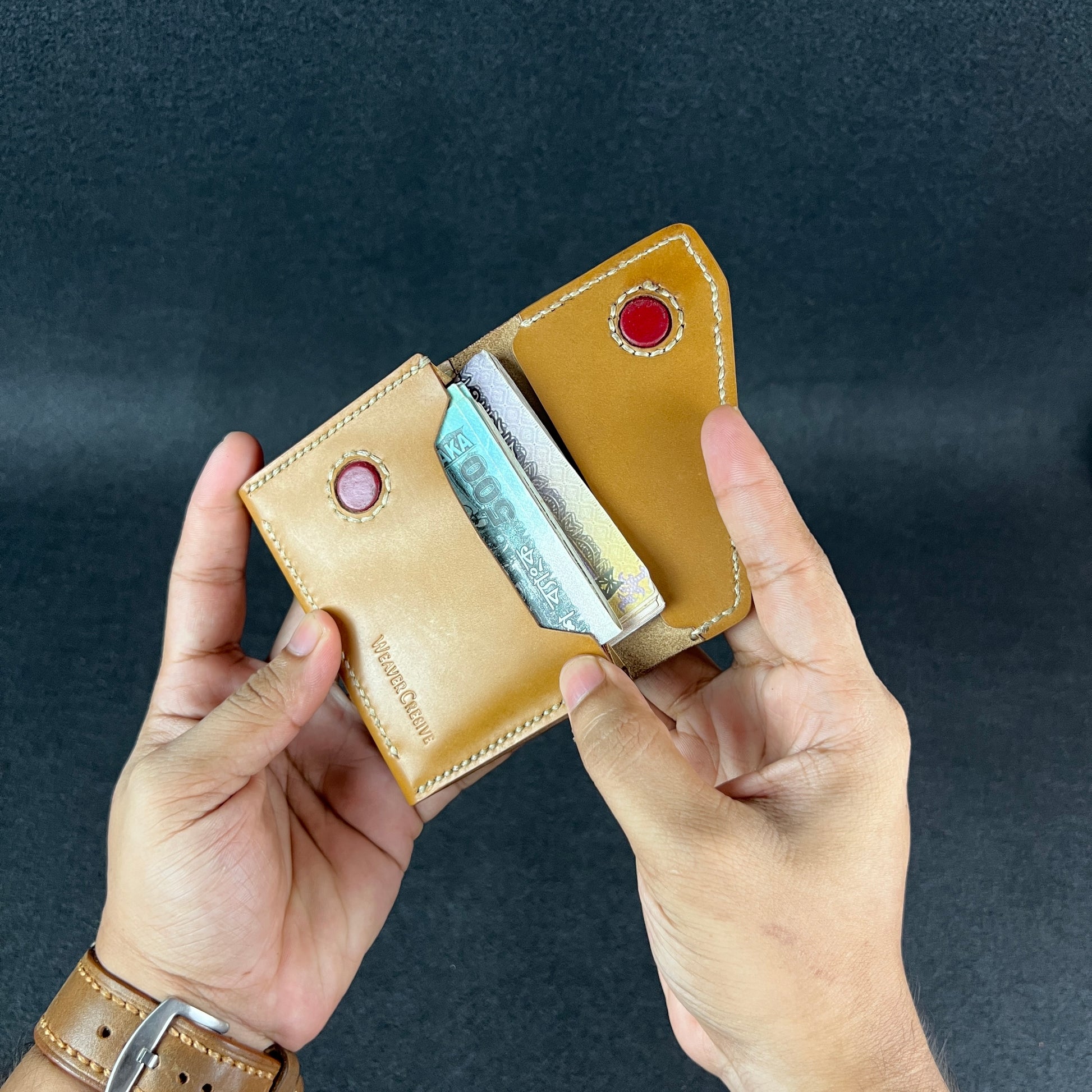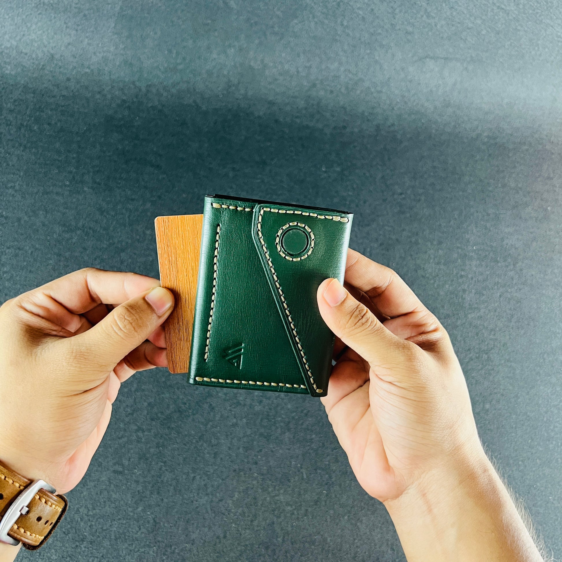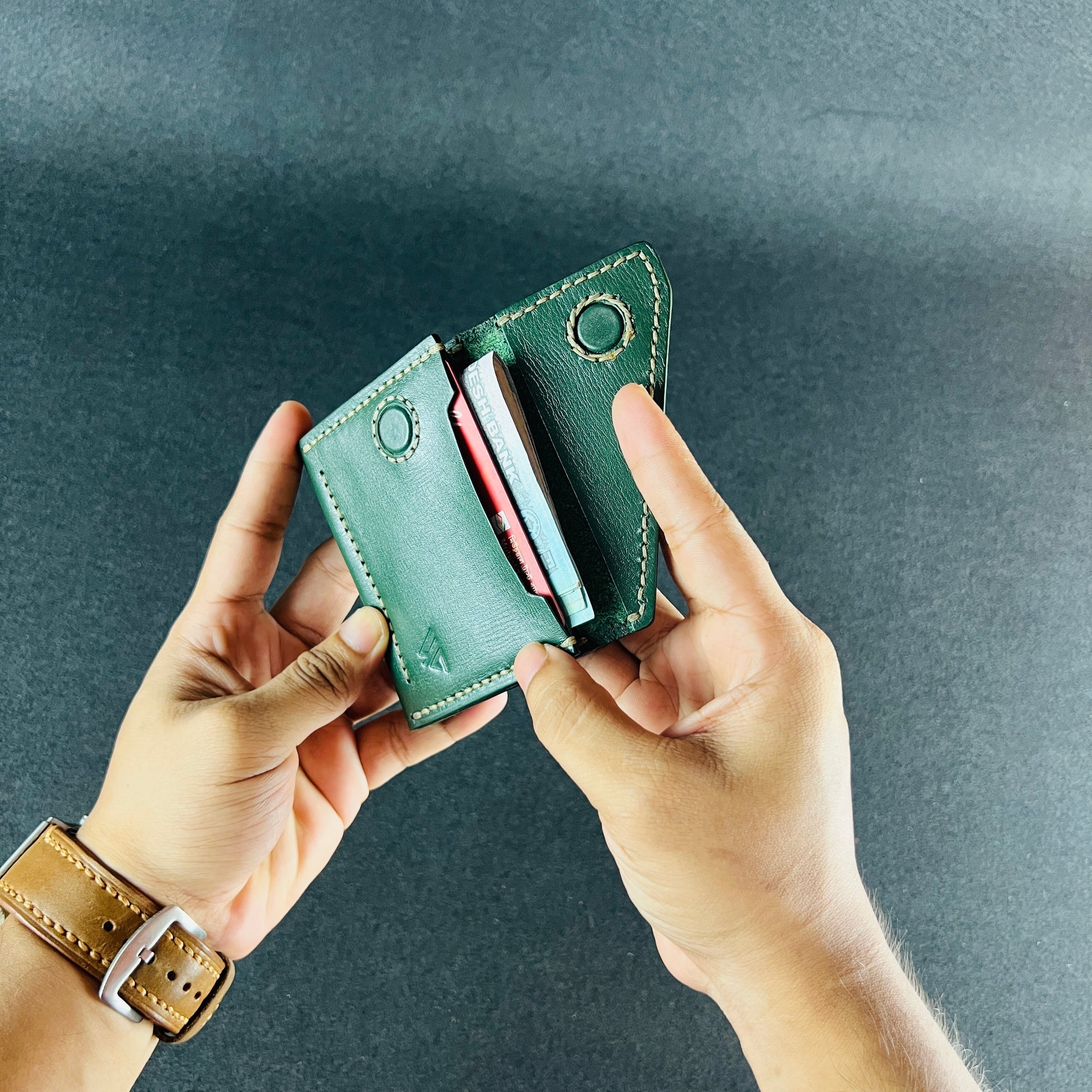 Compact in form yet surprisingly capacious inside, it opens like a folded leaf revealing structure, precision, and a sense of quiet control. Built for cards, minimal cash, and those who carry only what matters.
