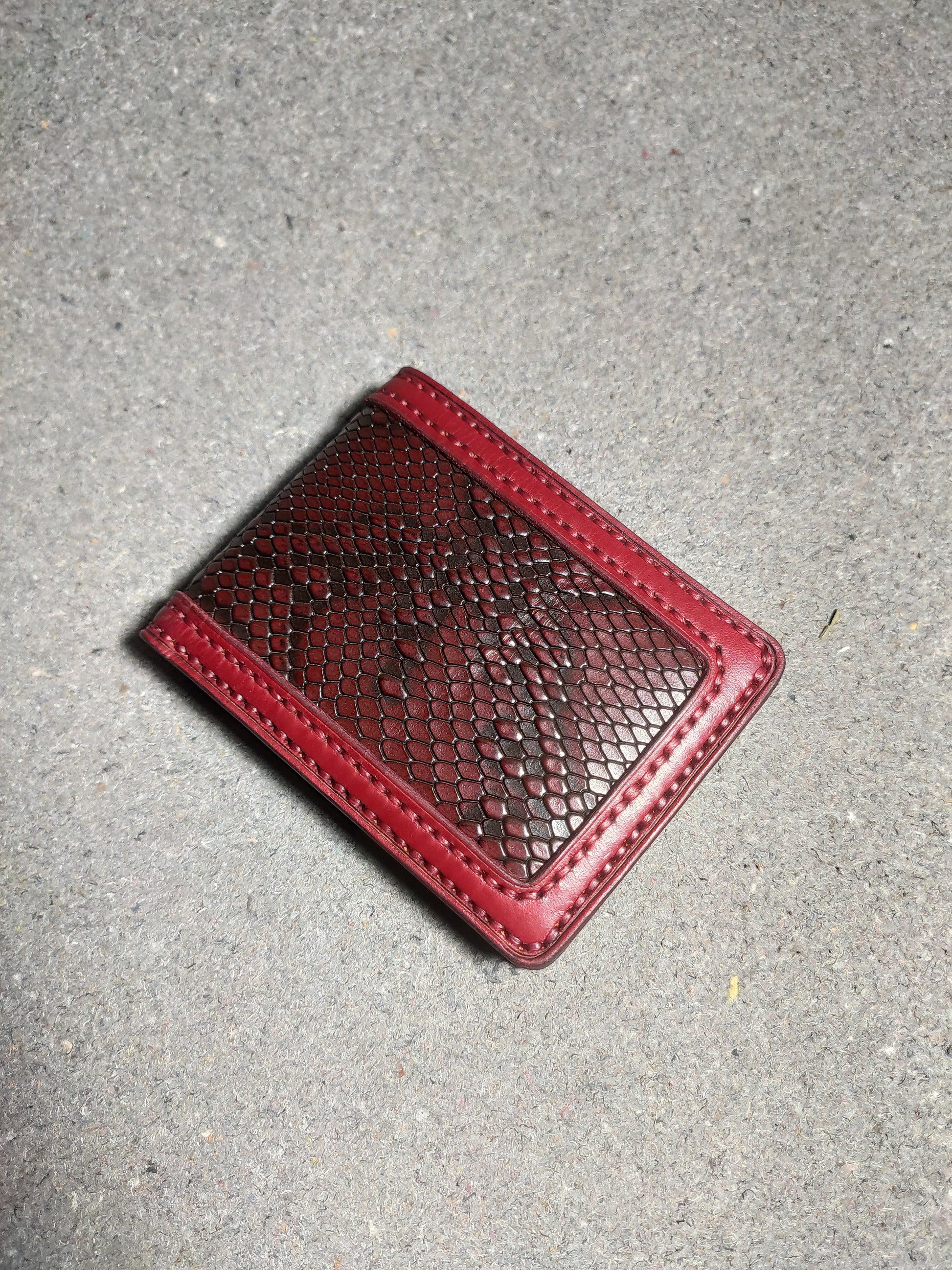 A fusion of texture and tone — Crimson Weave captures attention with its rich maroon hue and woven artistry. Designed to sit comfortably in your front pocket, it carries essentials with elegance and edge.