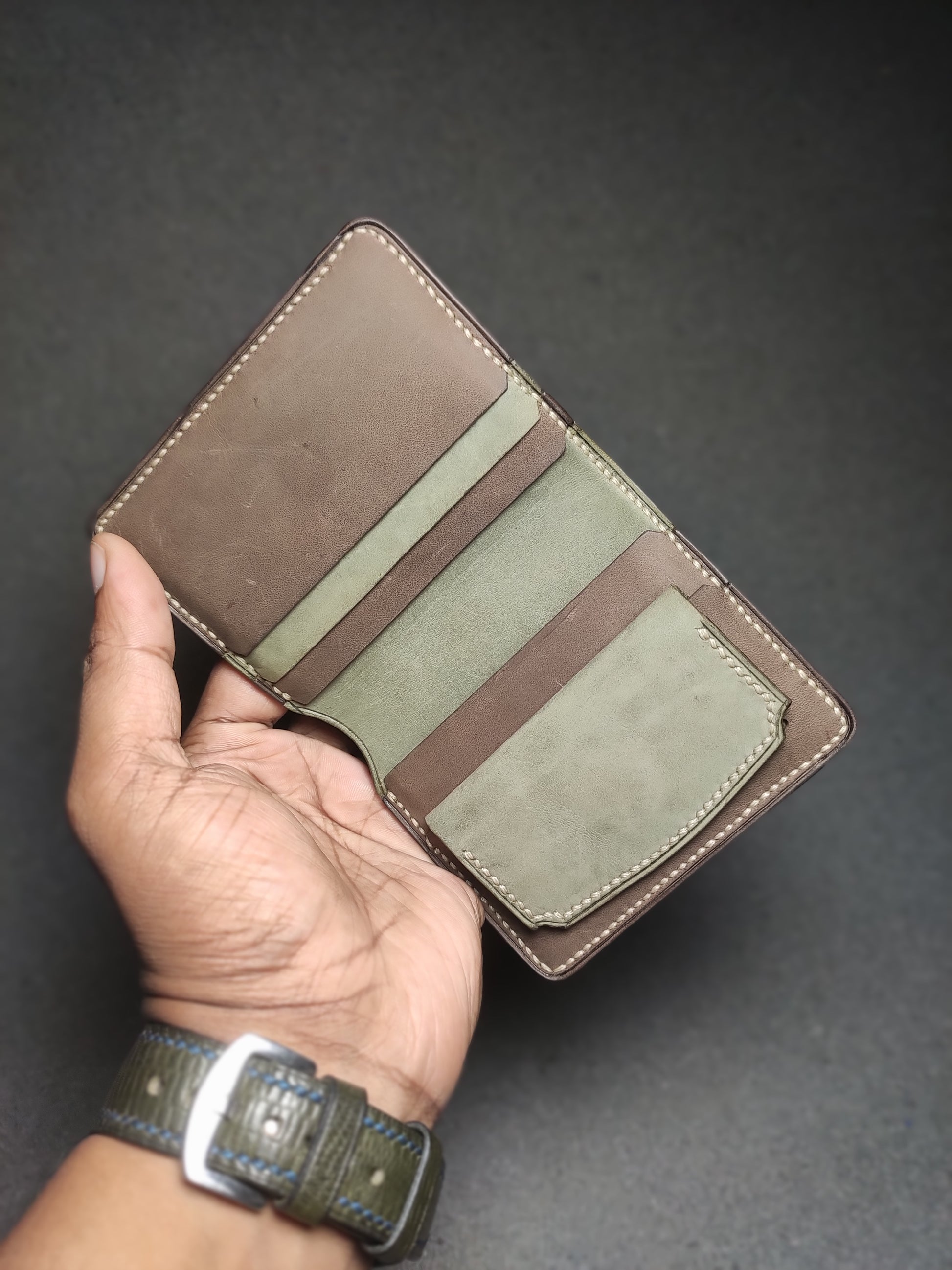 "Customize Your Wallet: Choose you preferred leather type, color, and thread options from our available stock"
