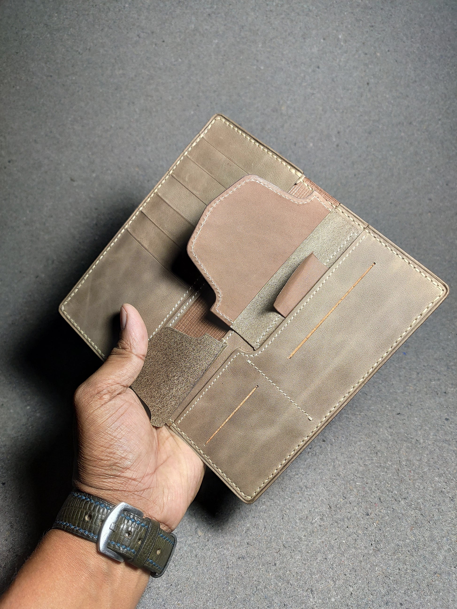 "Customize Your Wallet: Choose you preferred leather type, color, and thread options from our available stock"