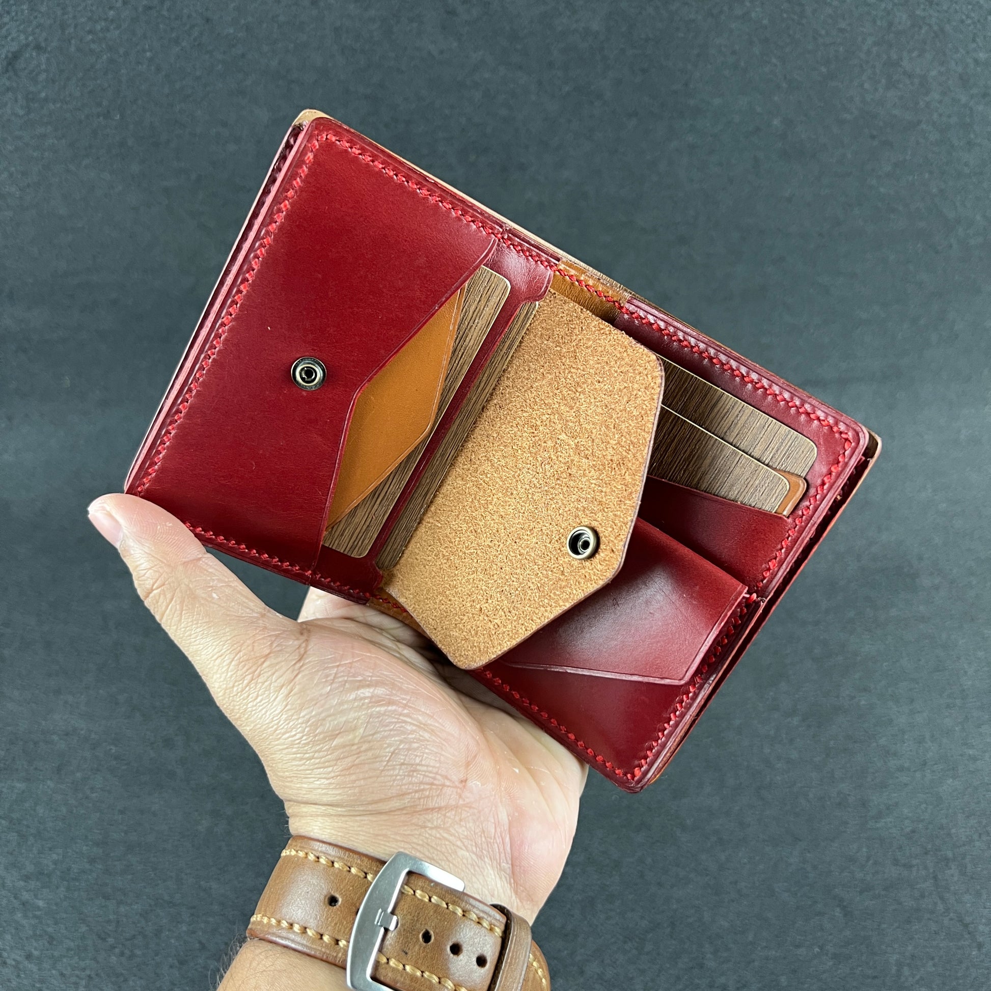 Despite its miniature stature (8.5 × 10.5 cm), it unfolds infinite utility — coins, cards, secrets, even SIMs — all cradled in rich, aging veg-tanned leather.