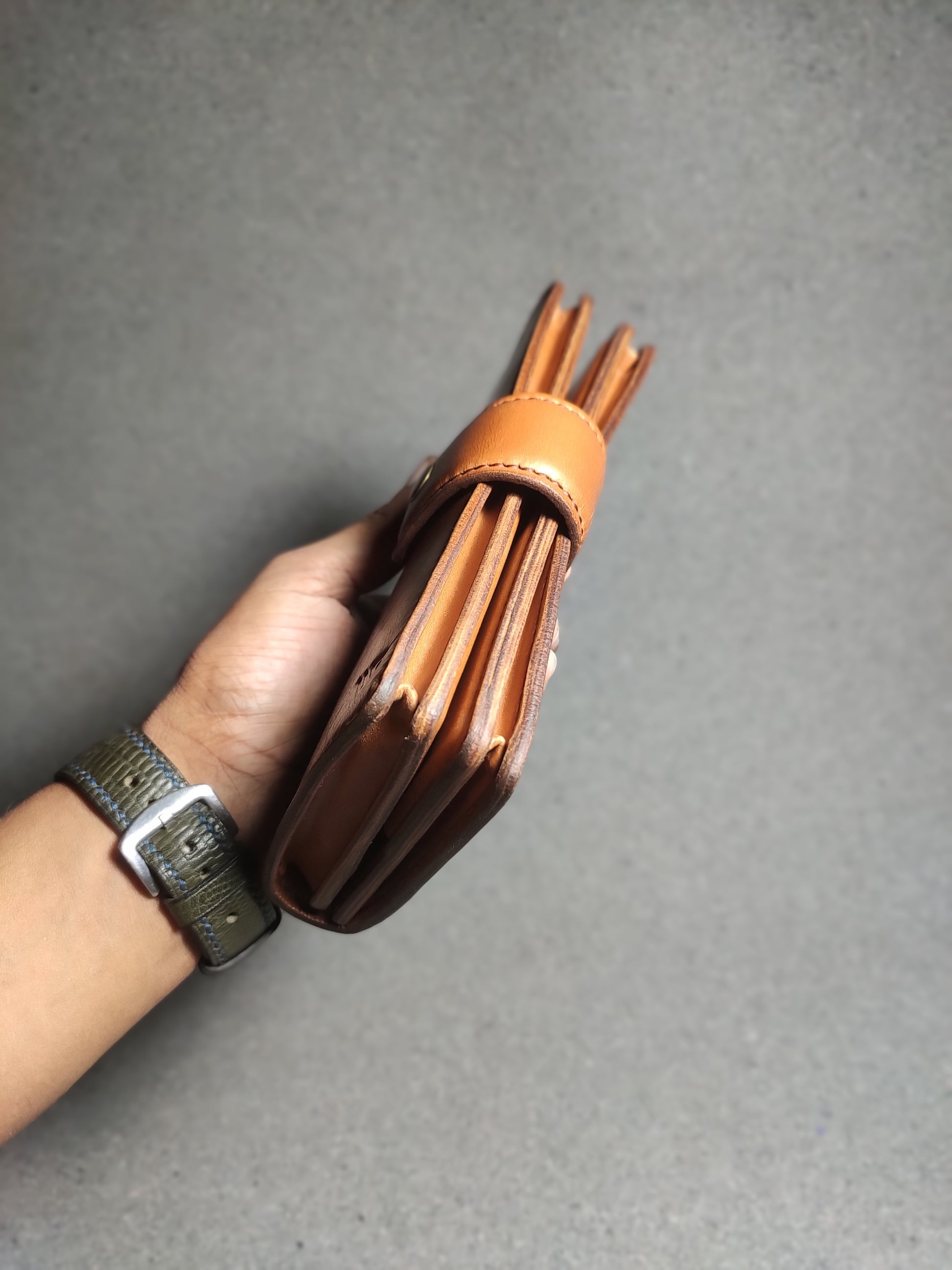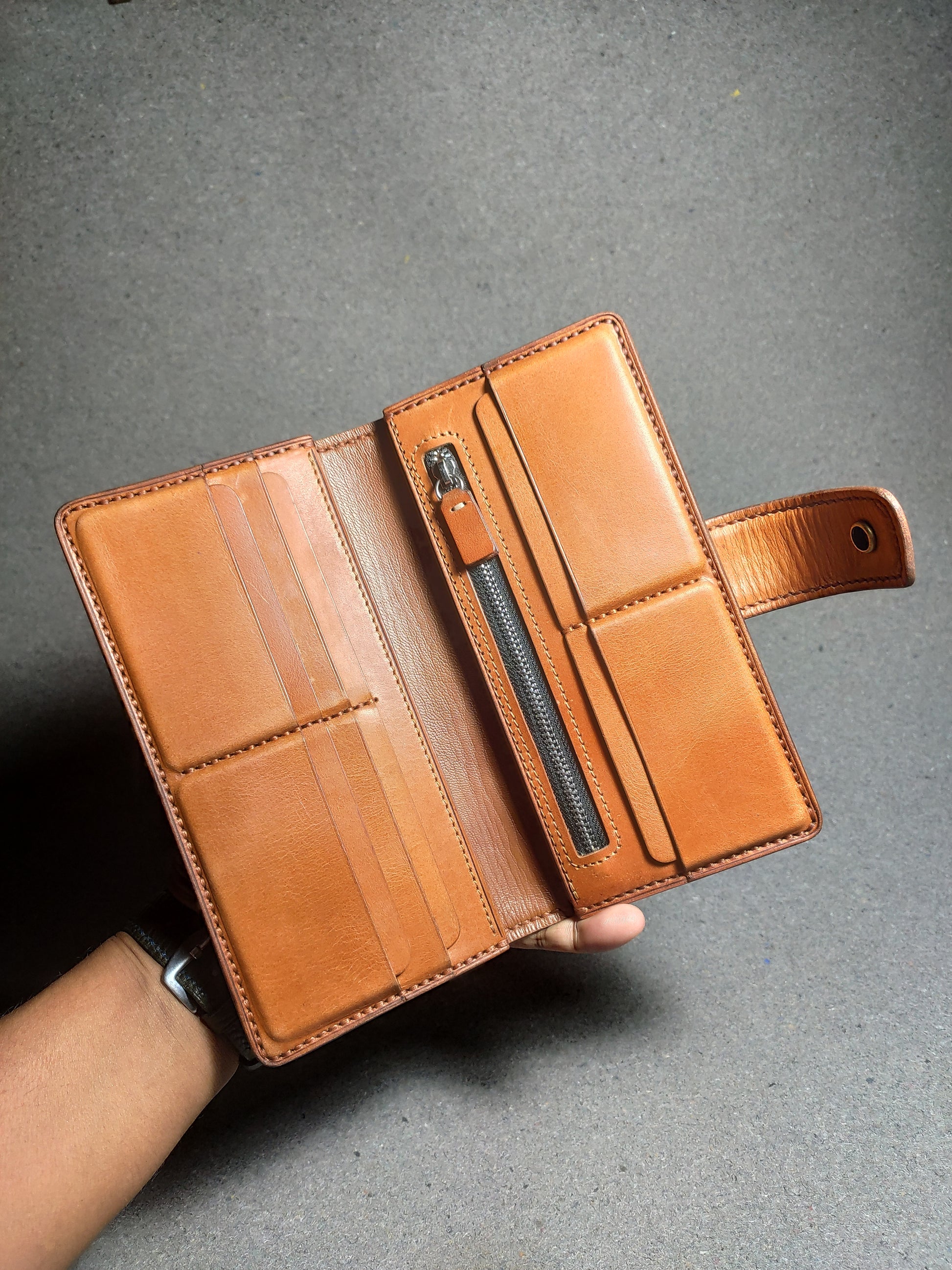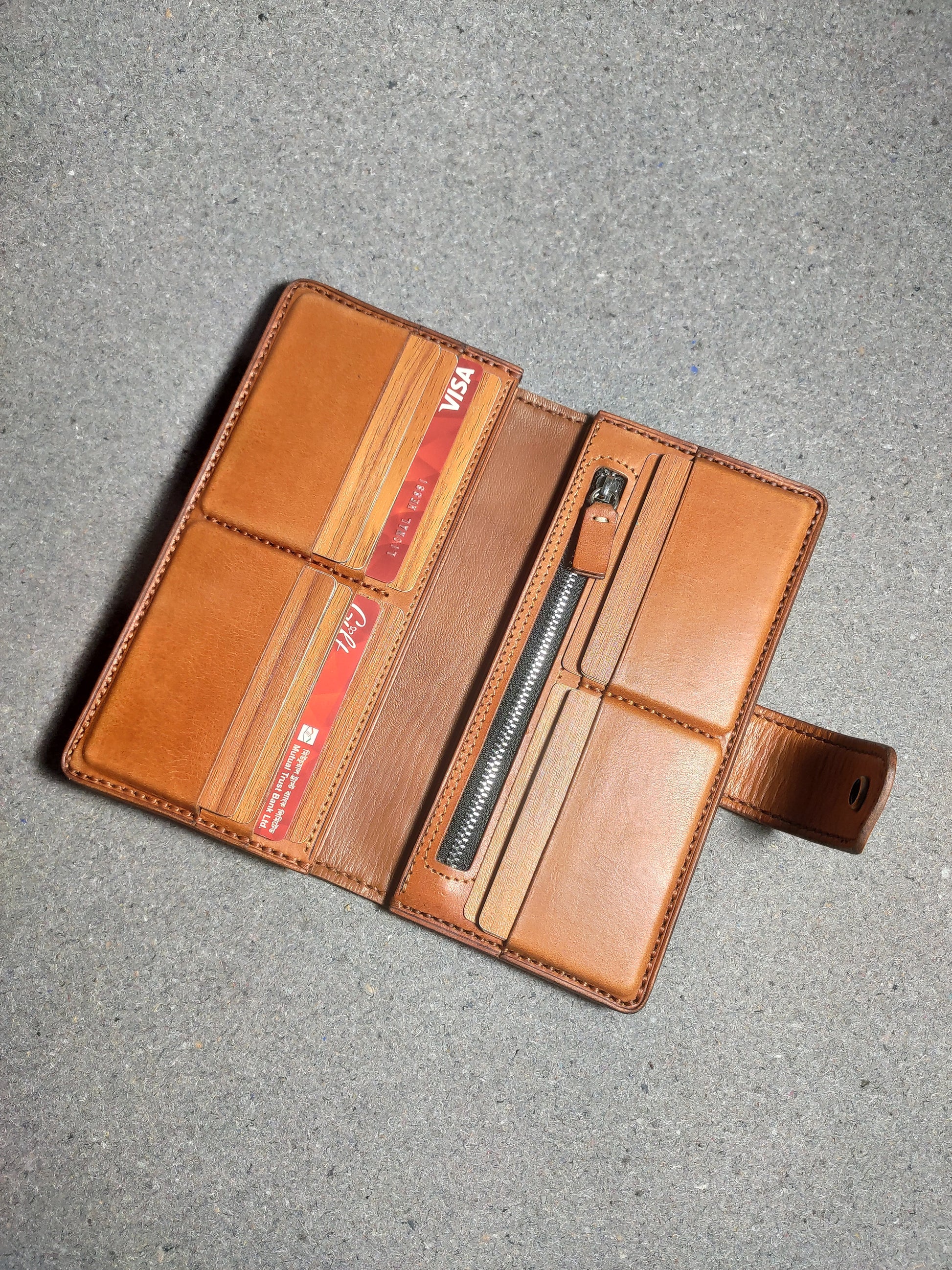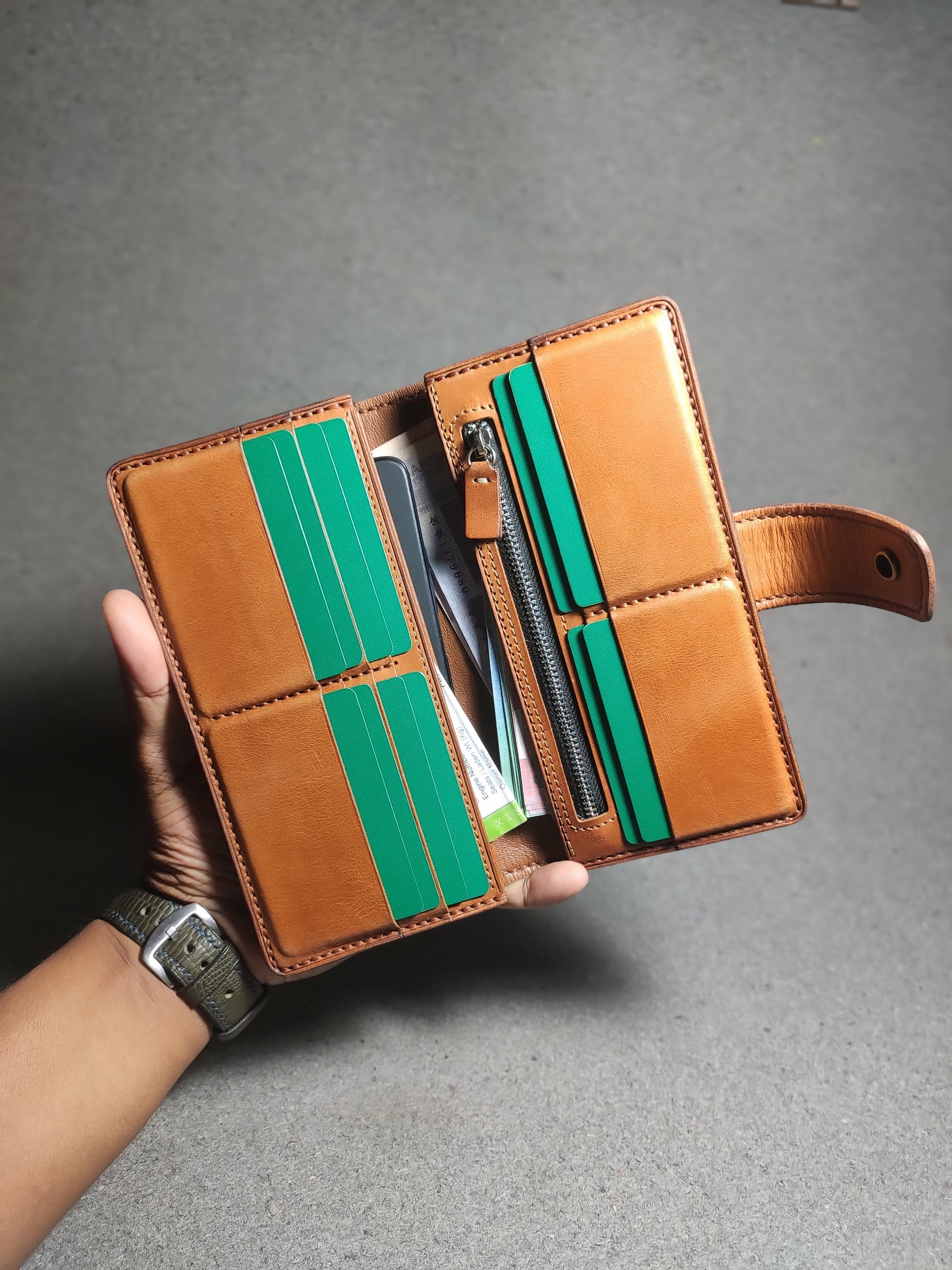 "Customize Your Wallet: Choose you preferred leather type, color, and thread options from our available stock"