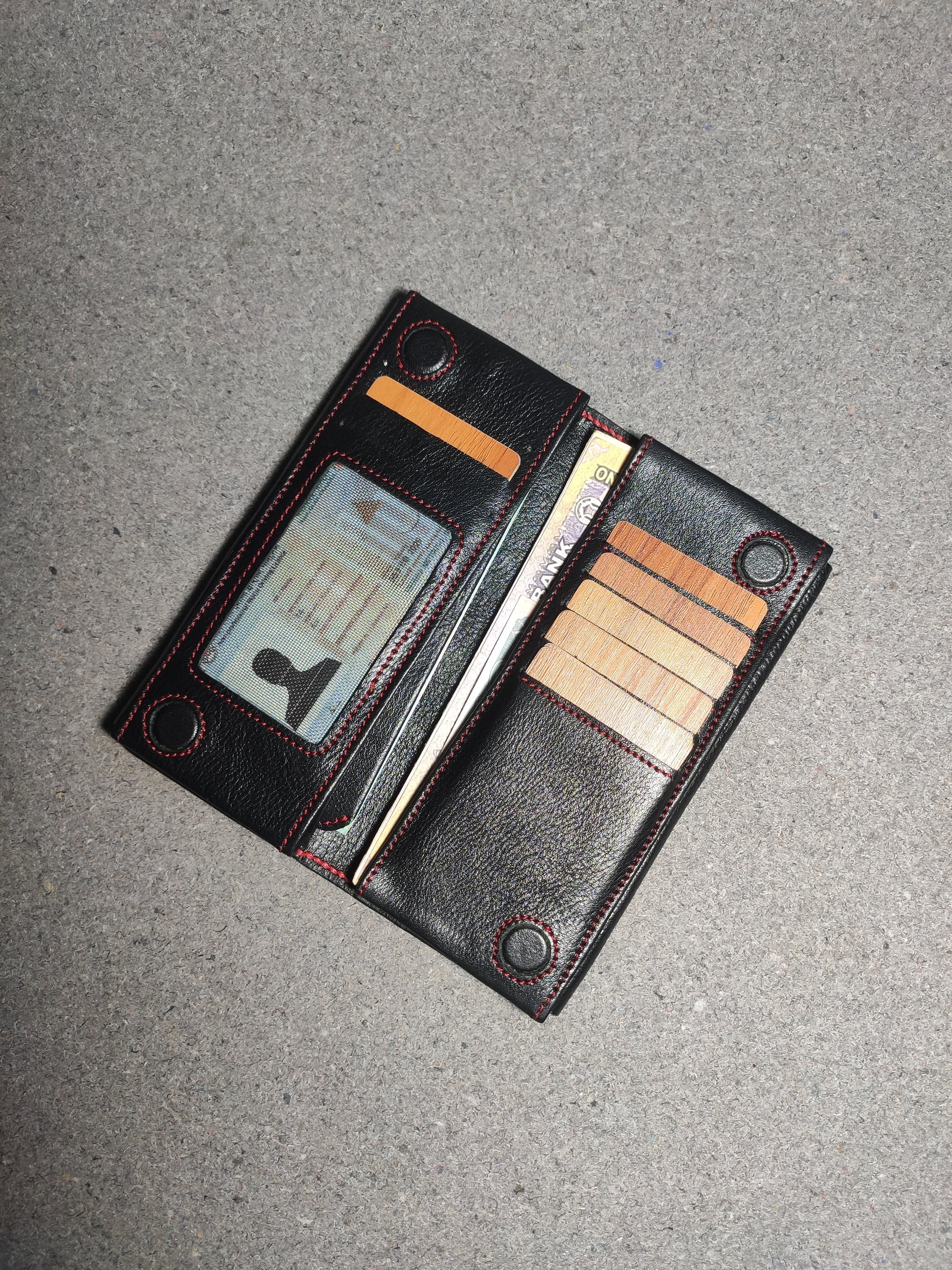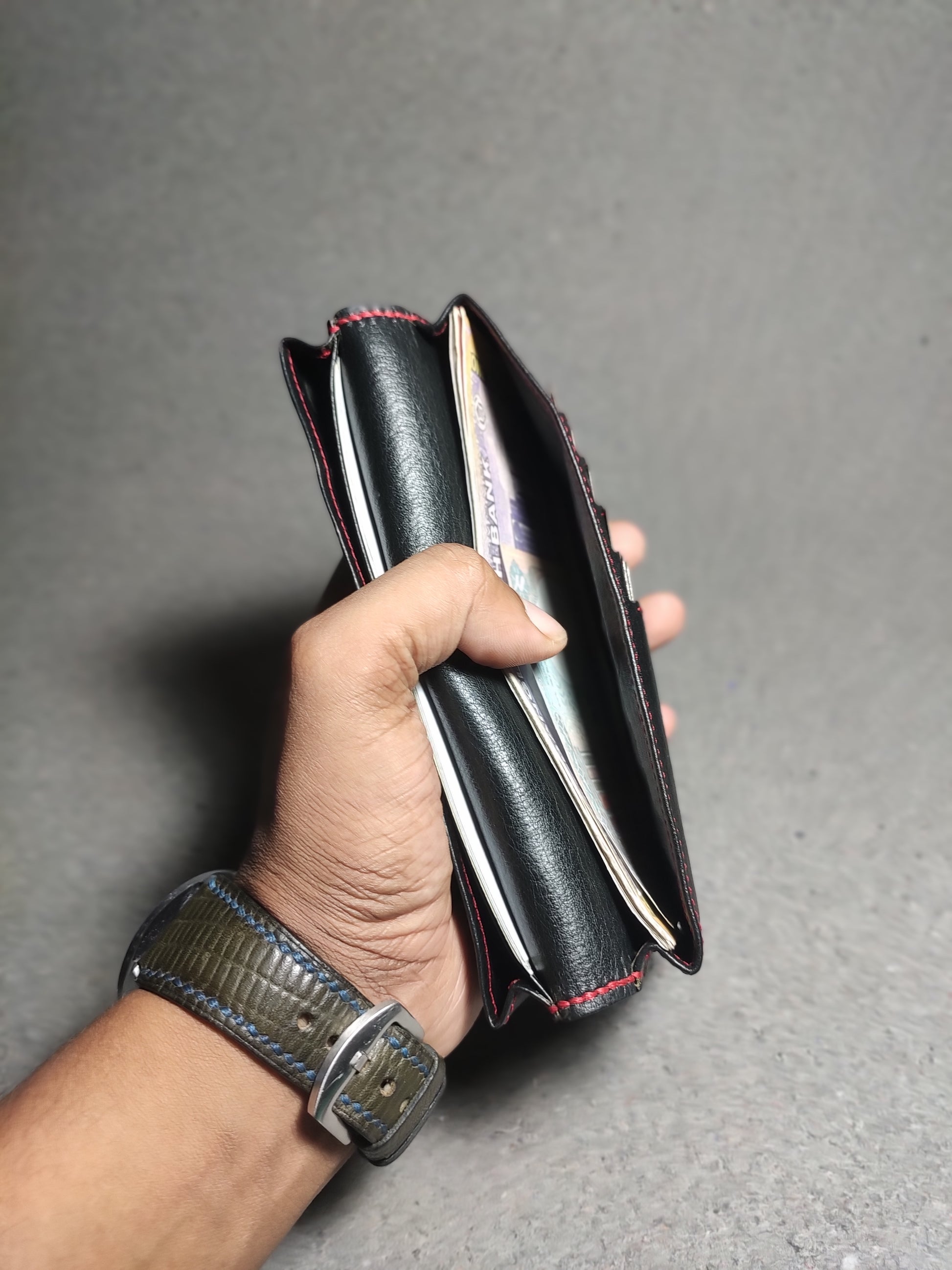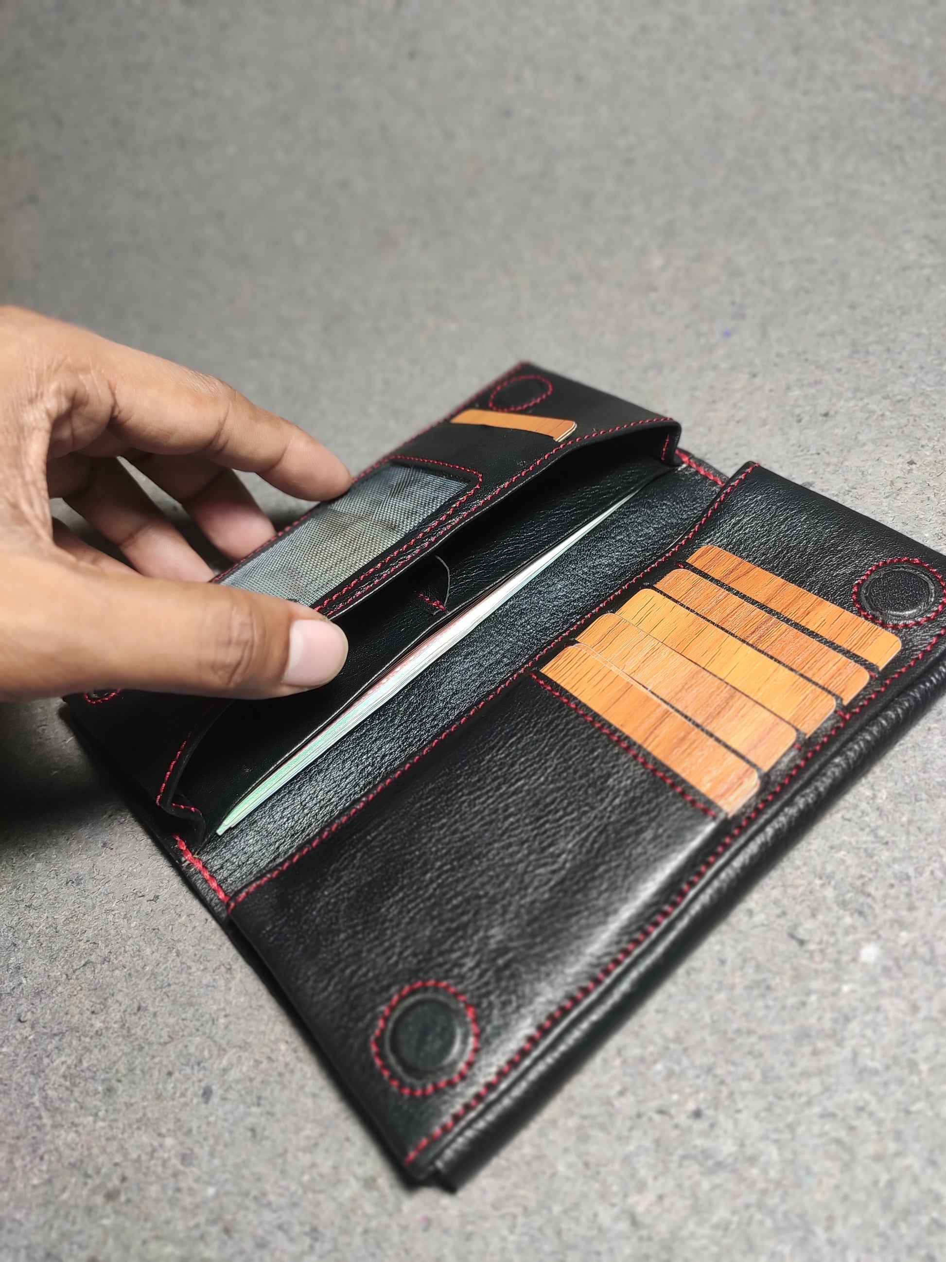 "Customize Your Wallet: Choose you preferred leather type, color, and thread options from our available stock"