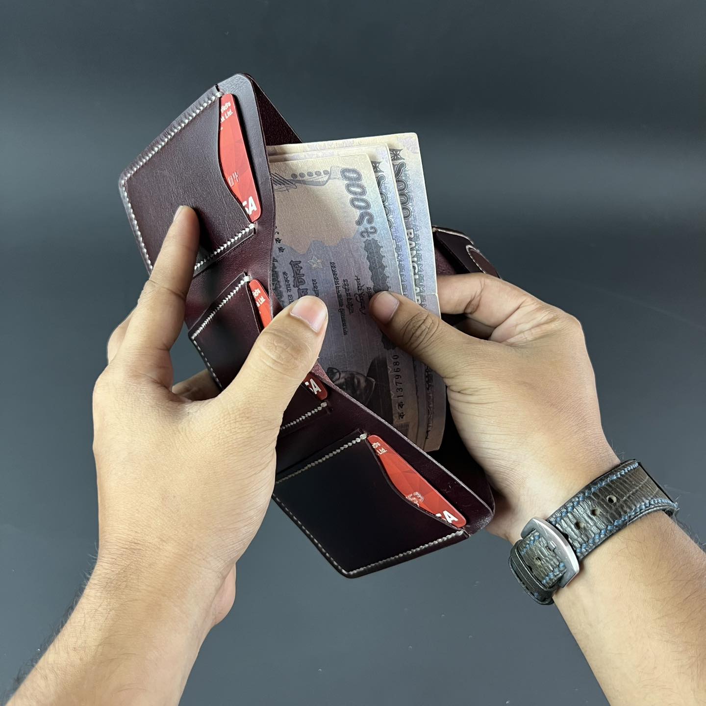 "Customize Your Wallet: Choose you preferred leather type, color, and thread options from our available stock"