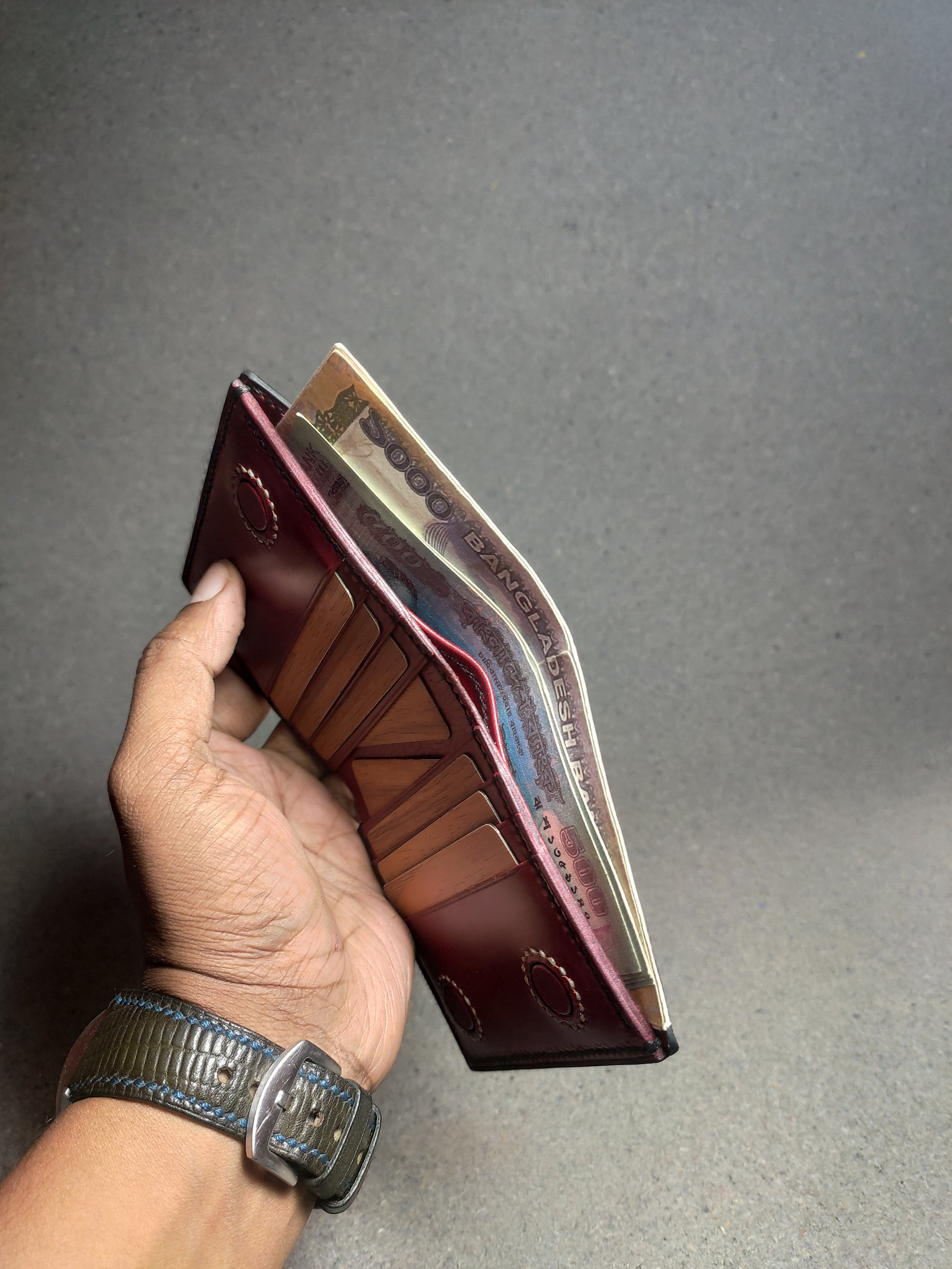 "Customize Your Wallet: Choose you preferred leather type, color, and thread options from our available stock"