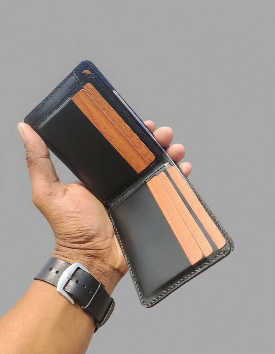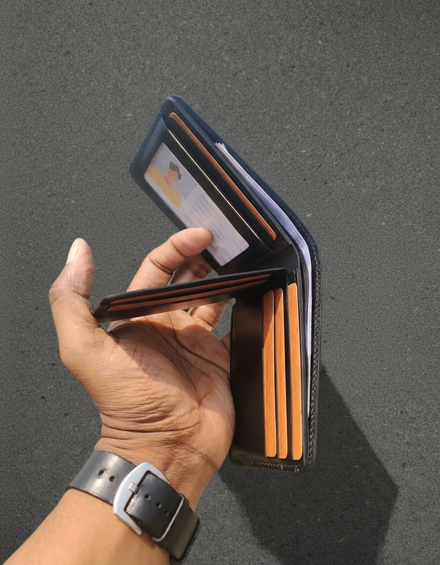 "Customize Your Wallet: Choose you preferred leather type, color, and thread options from our available stock"
