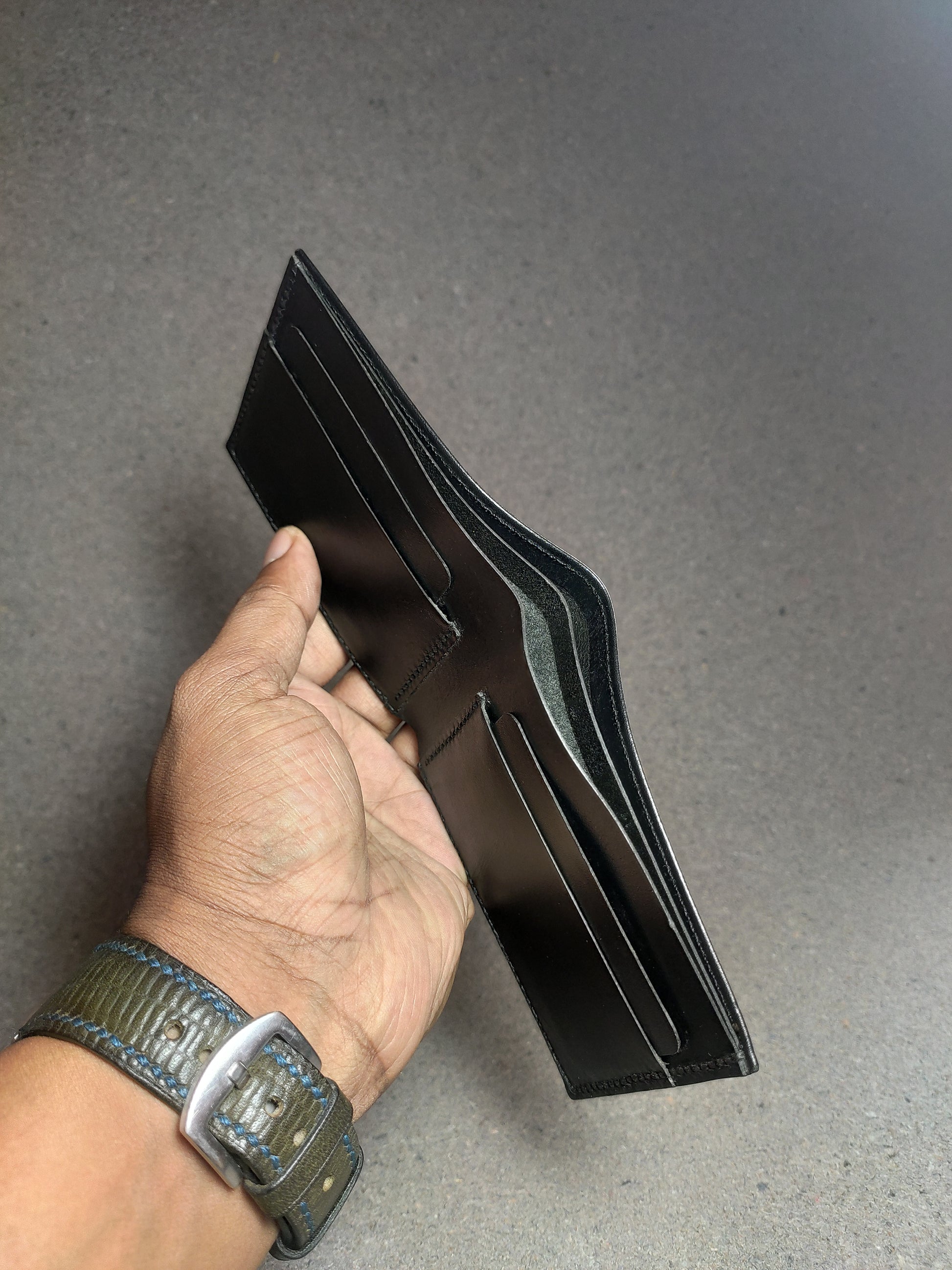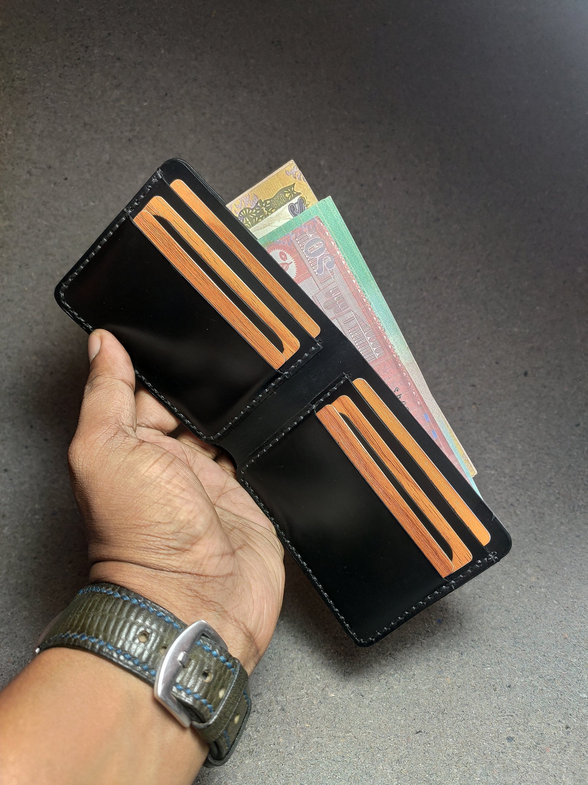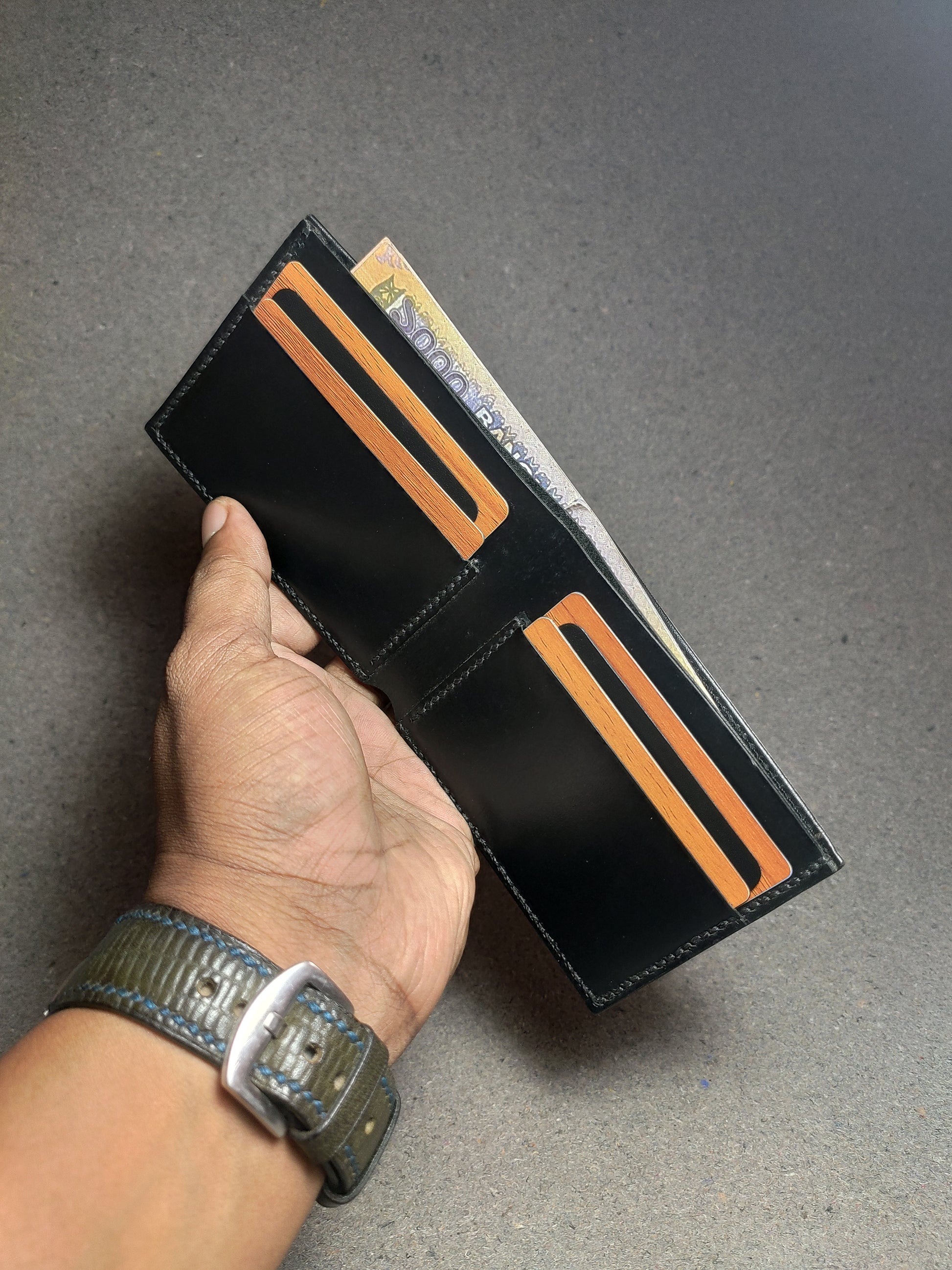 "Customize Your Wallet: Choose you preferred leather type, color, and thread options from our available stock"