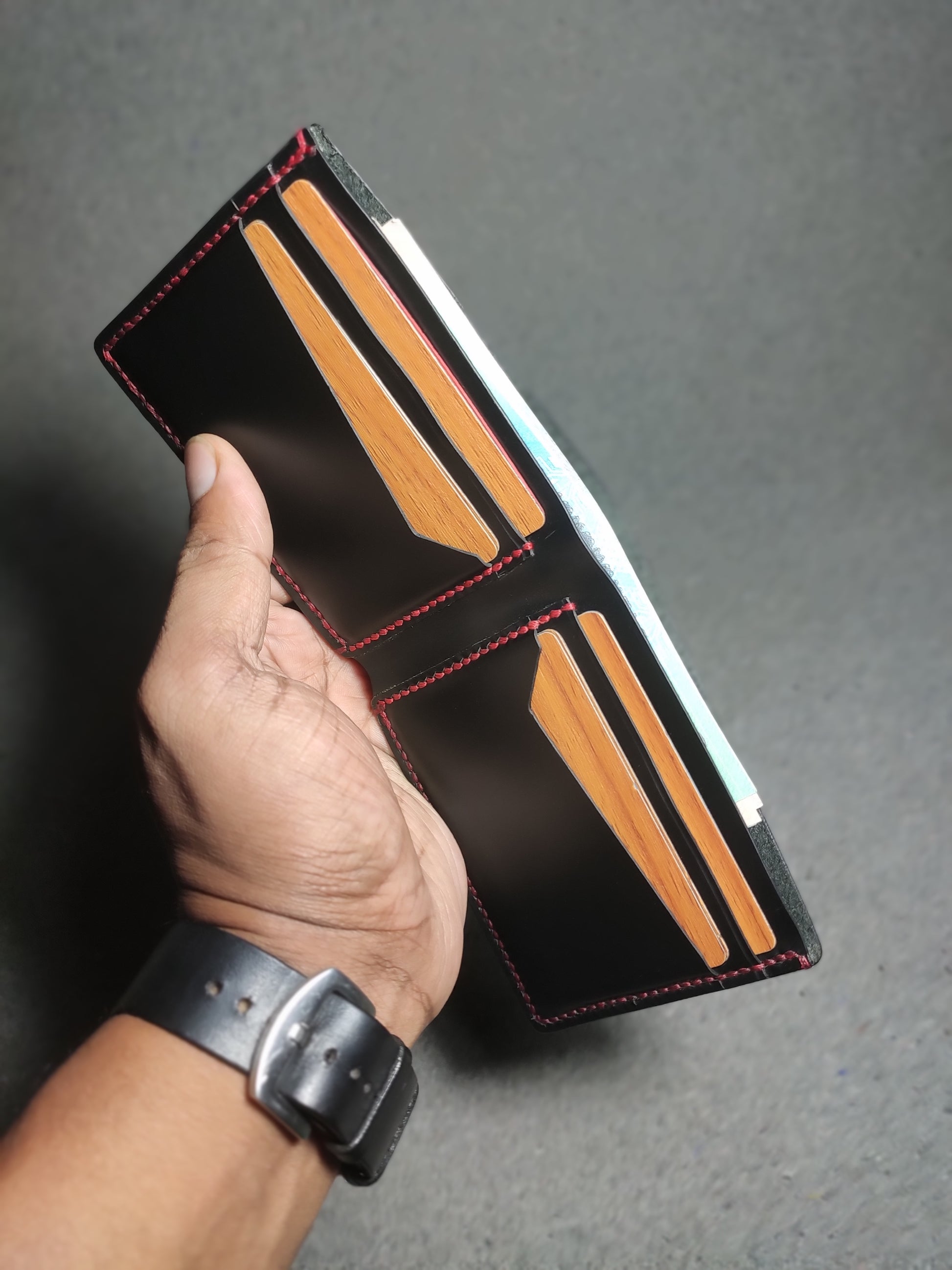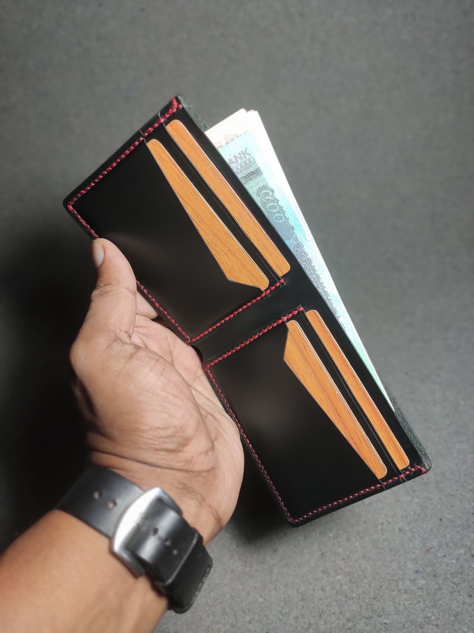 "Customize Your Wallet: Choose you preferred leather type, color, and thread options from our available stock"