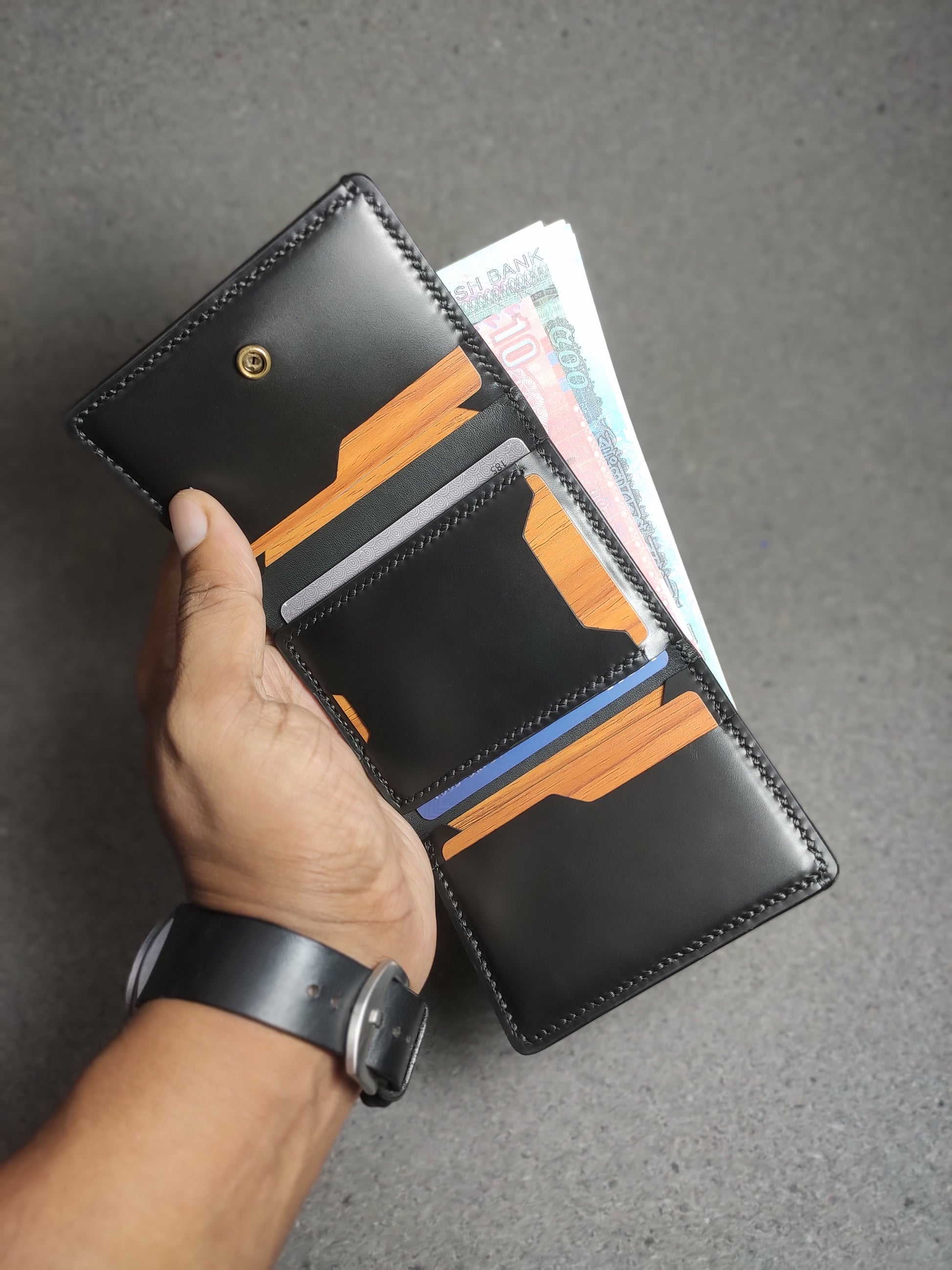 "Customize Your Wallet: Choose you preferred leather type, color, and thread options from our available stock"