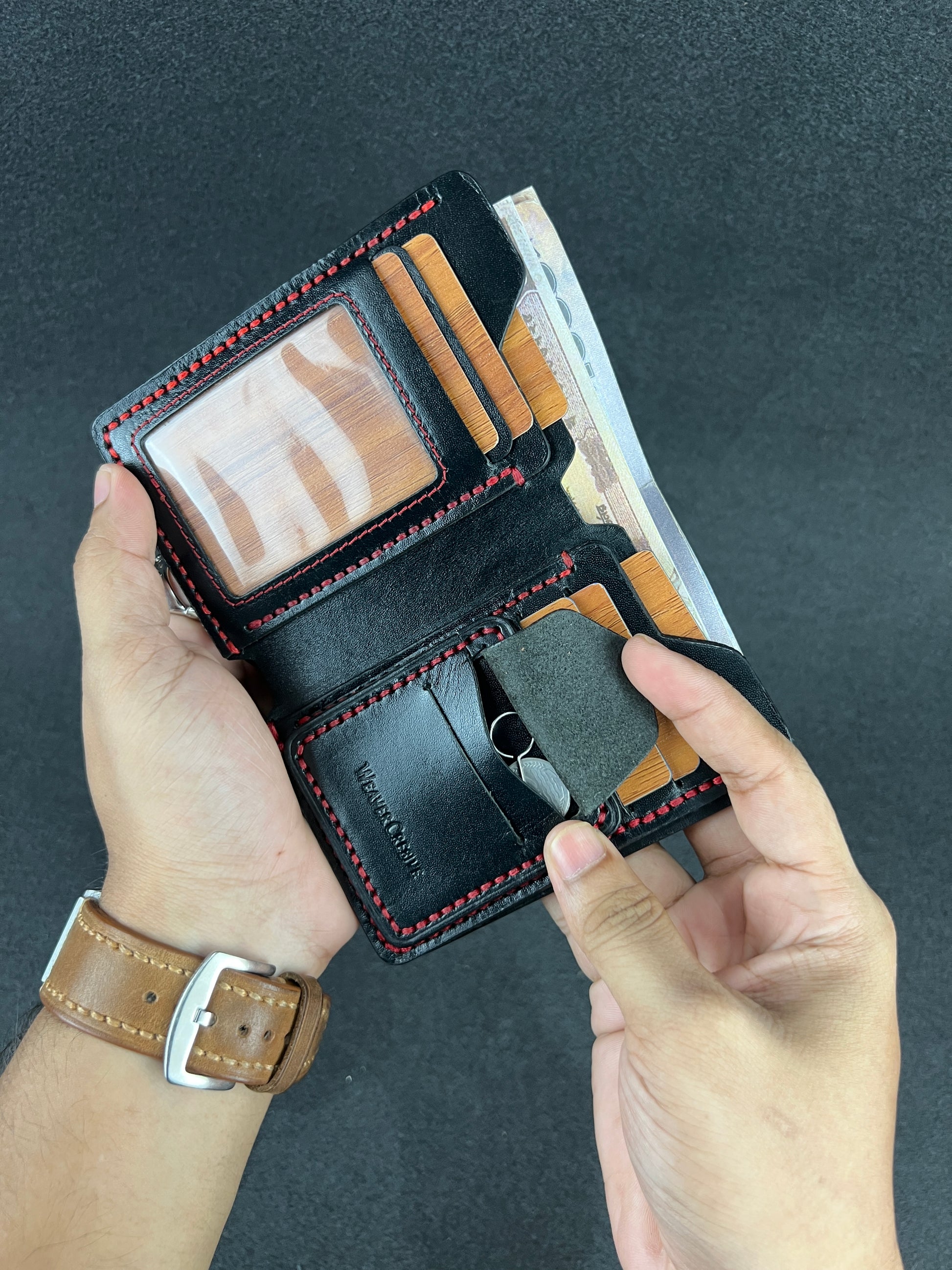 Inside, two cash chambers and a dedicated photo slot sit beside hidden secrets — slim pockets and a gadget groove that prove luxury is not about excess, but precision.