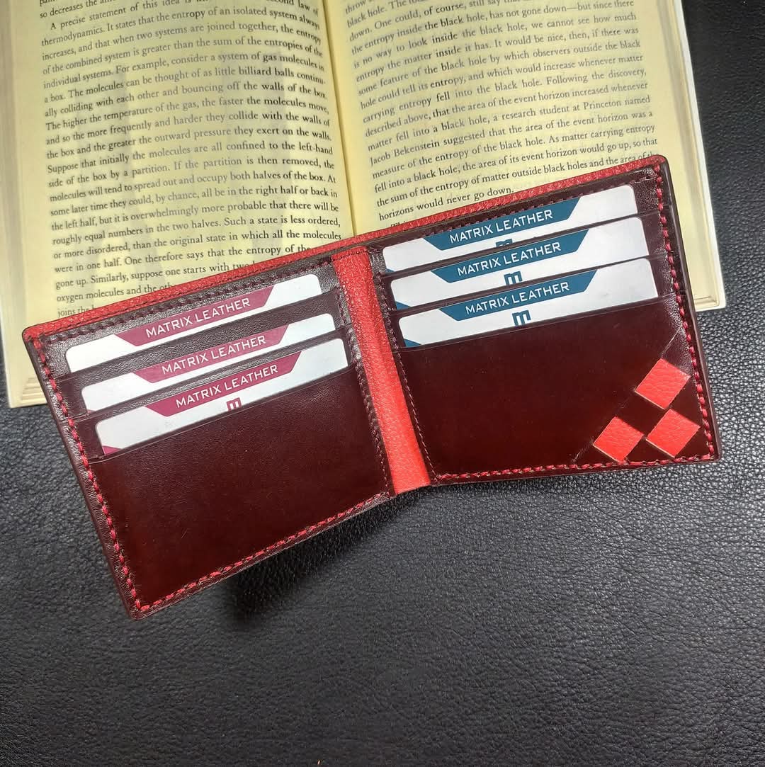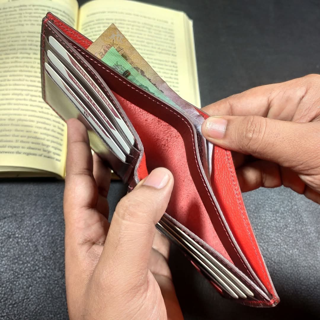 "Customize Your Wallet: Choose you preferred leather type, color, and thread options from our available stock"