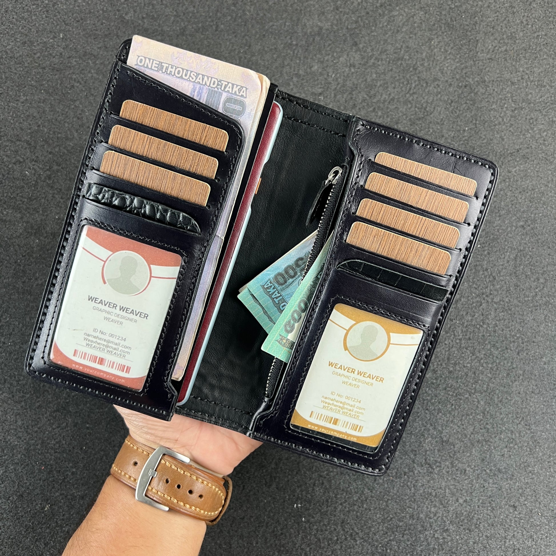 • Dual Fold Capacity for Cash, Cards & Essentials