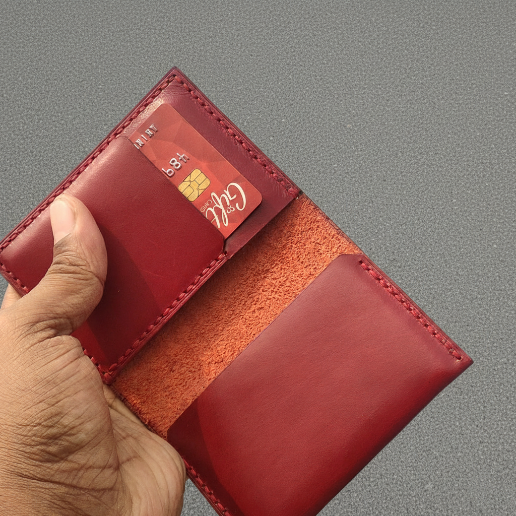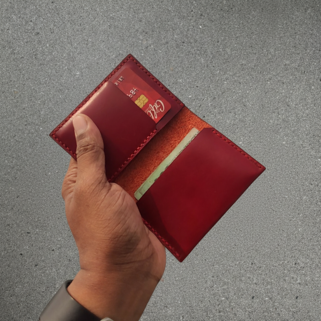 "Customize Your Wallet: Choose you preferred leather type, color, and thread options from our available stock"