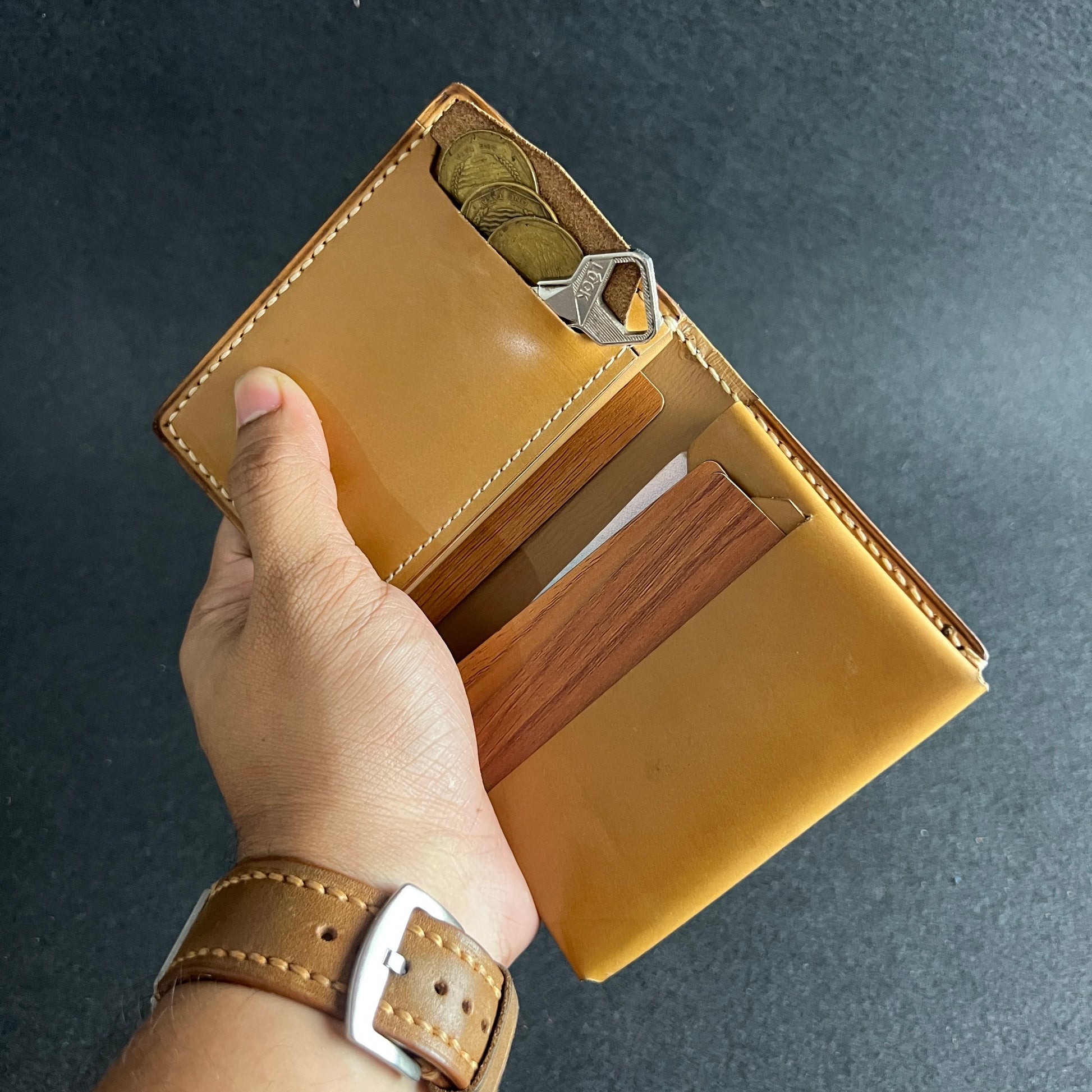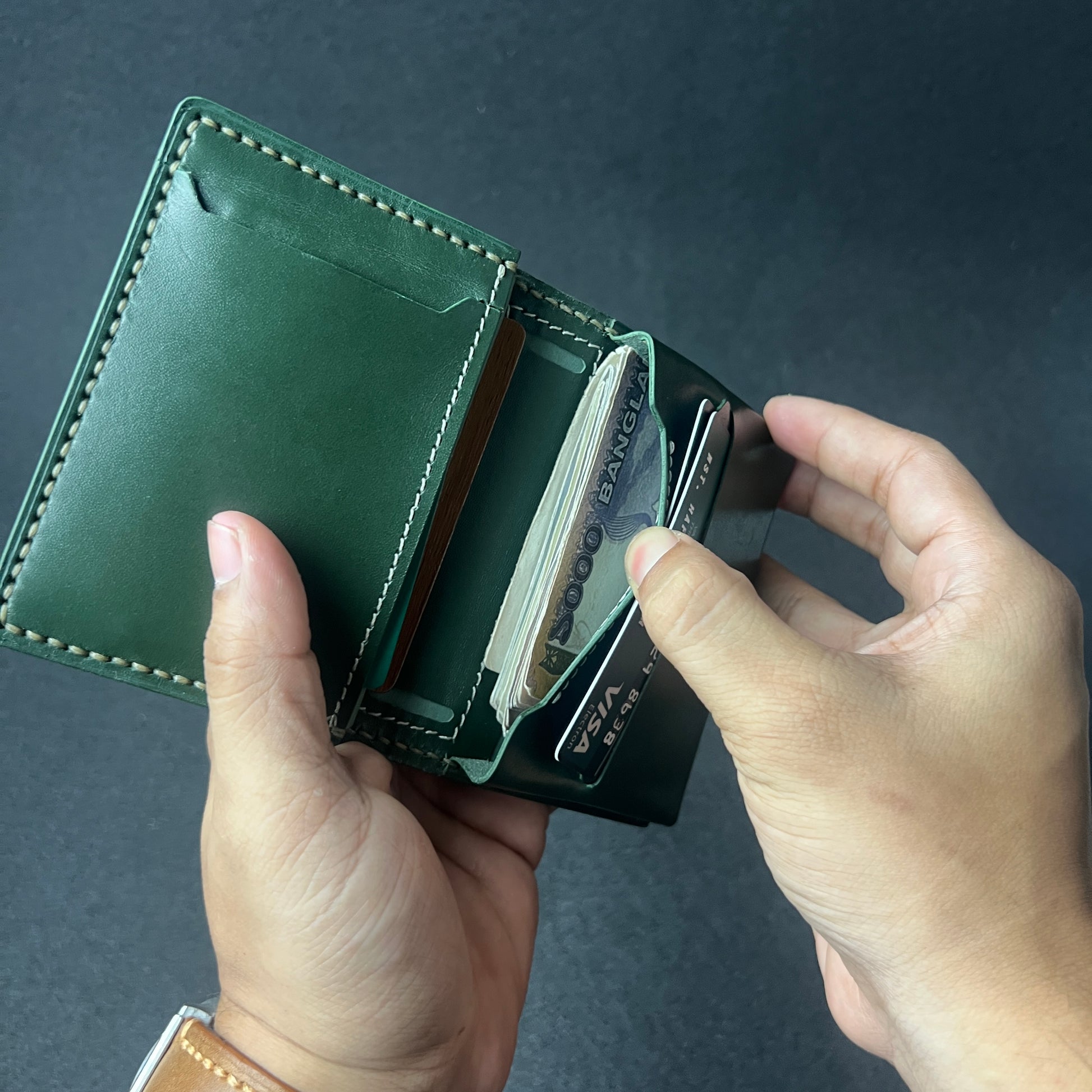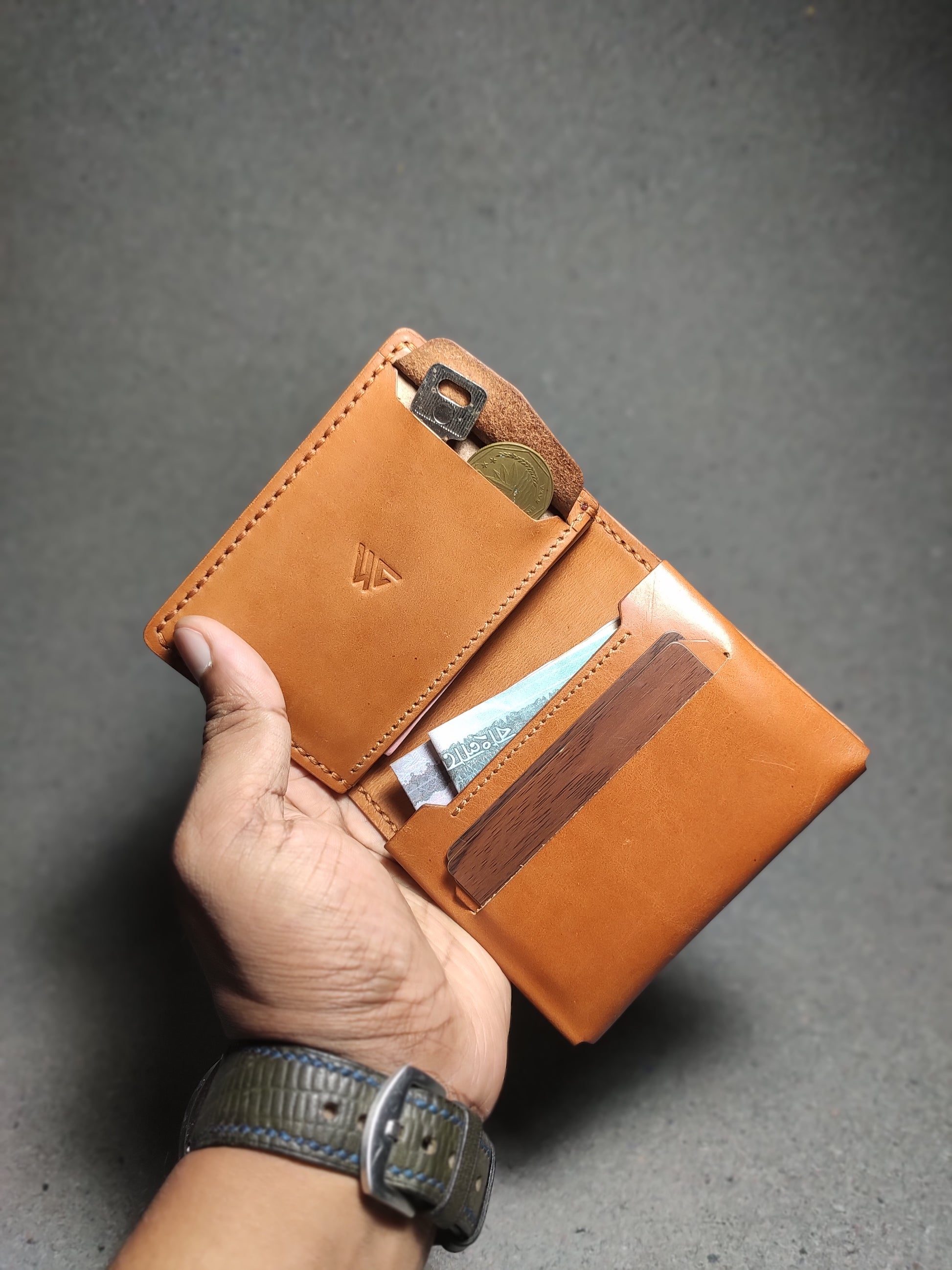 Trove is a vertical bi-fold wallet that feels like a secret vault — smartly structured, deeply functional, and effortlessly stylish. A folded cash chamber, a coin/key compartment, 5–6 card slots, and hidden storage keep your life organized in the most minimal form.