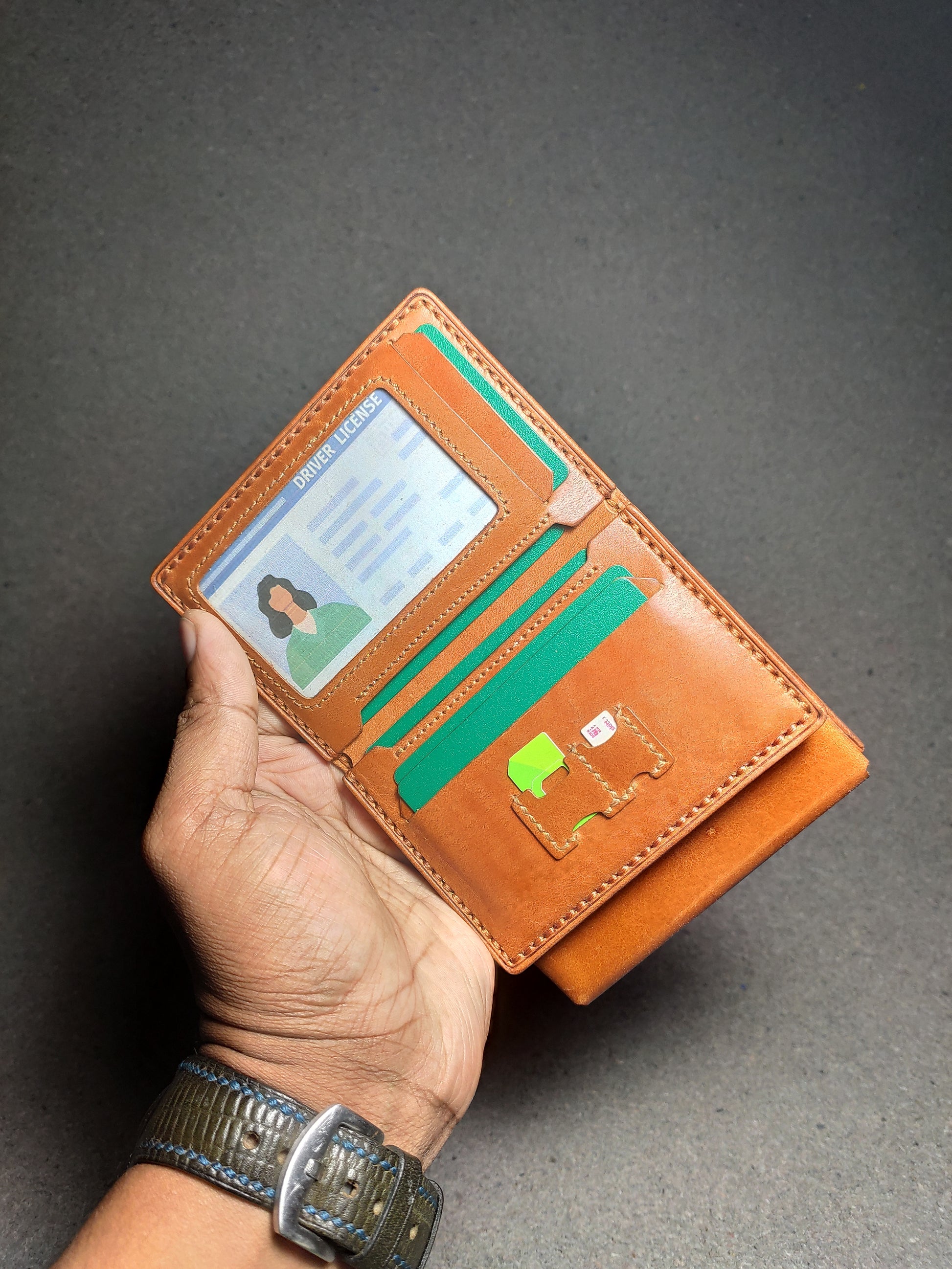 "Customize Your Wallet: Choose you preferred leather type, color, and thread options from our available stock"