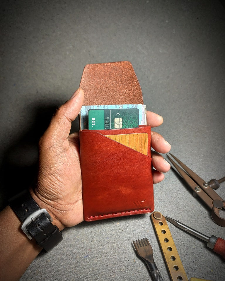 Crafted from vegetable-tanned leather, it holds your essentials —