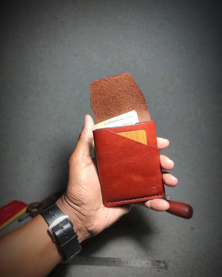 "Customize Your Wallet: Choose you preferred leather type, color, and thread options from our available stock"