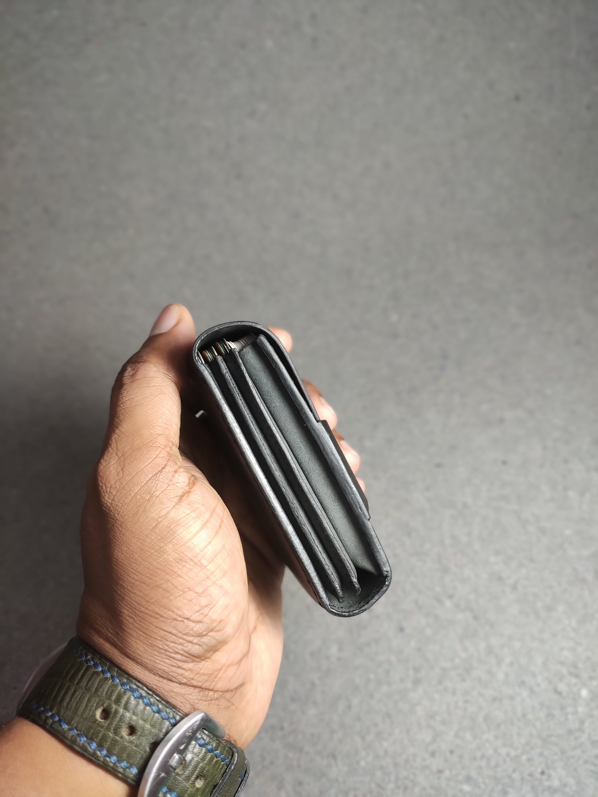 and a flexible inner chamber for up to 20 visiting cards or folded notes.