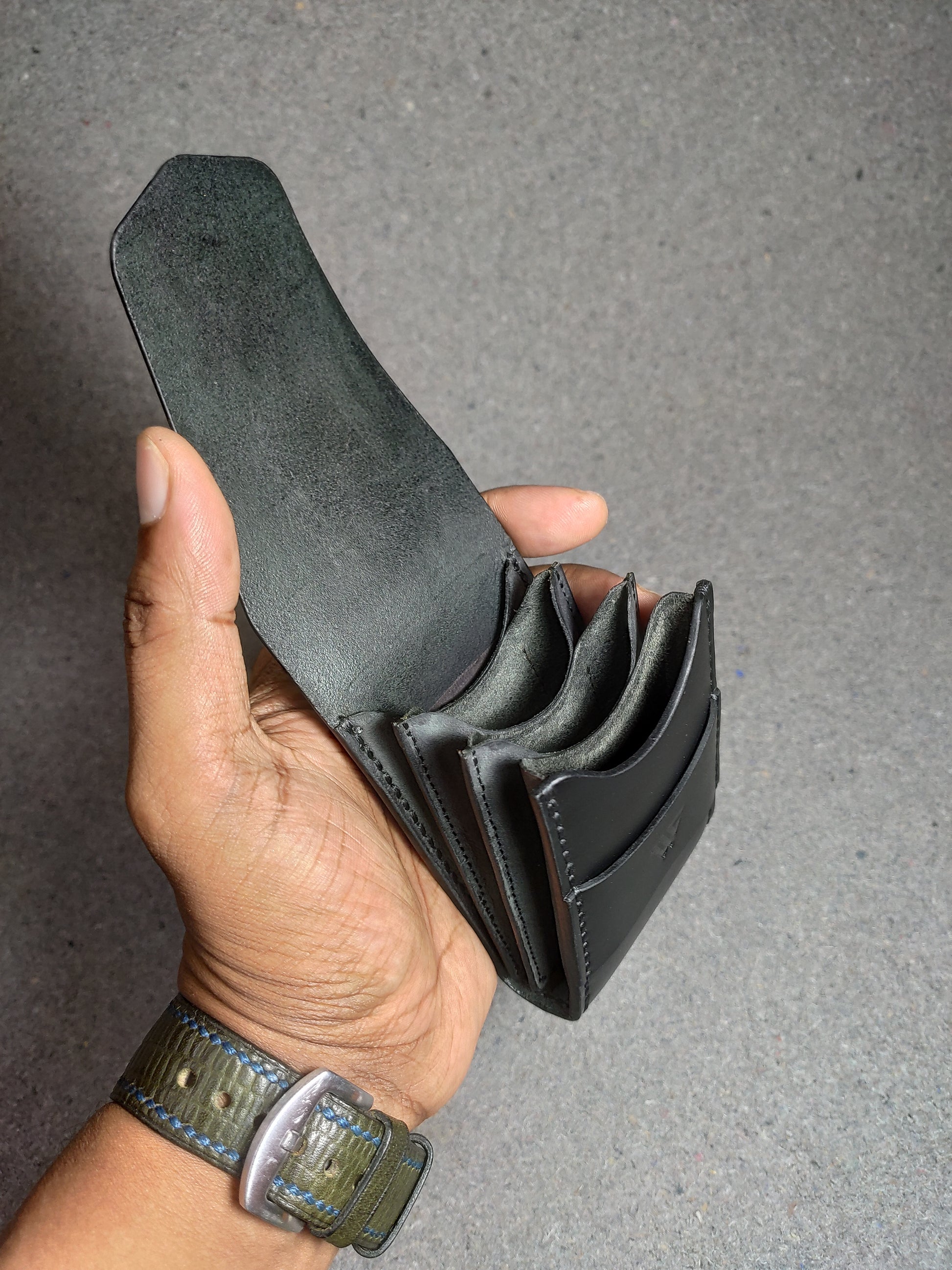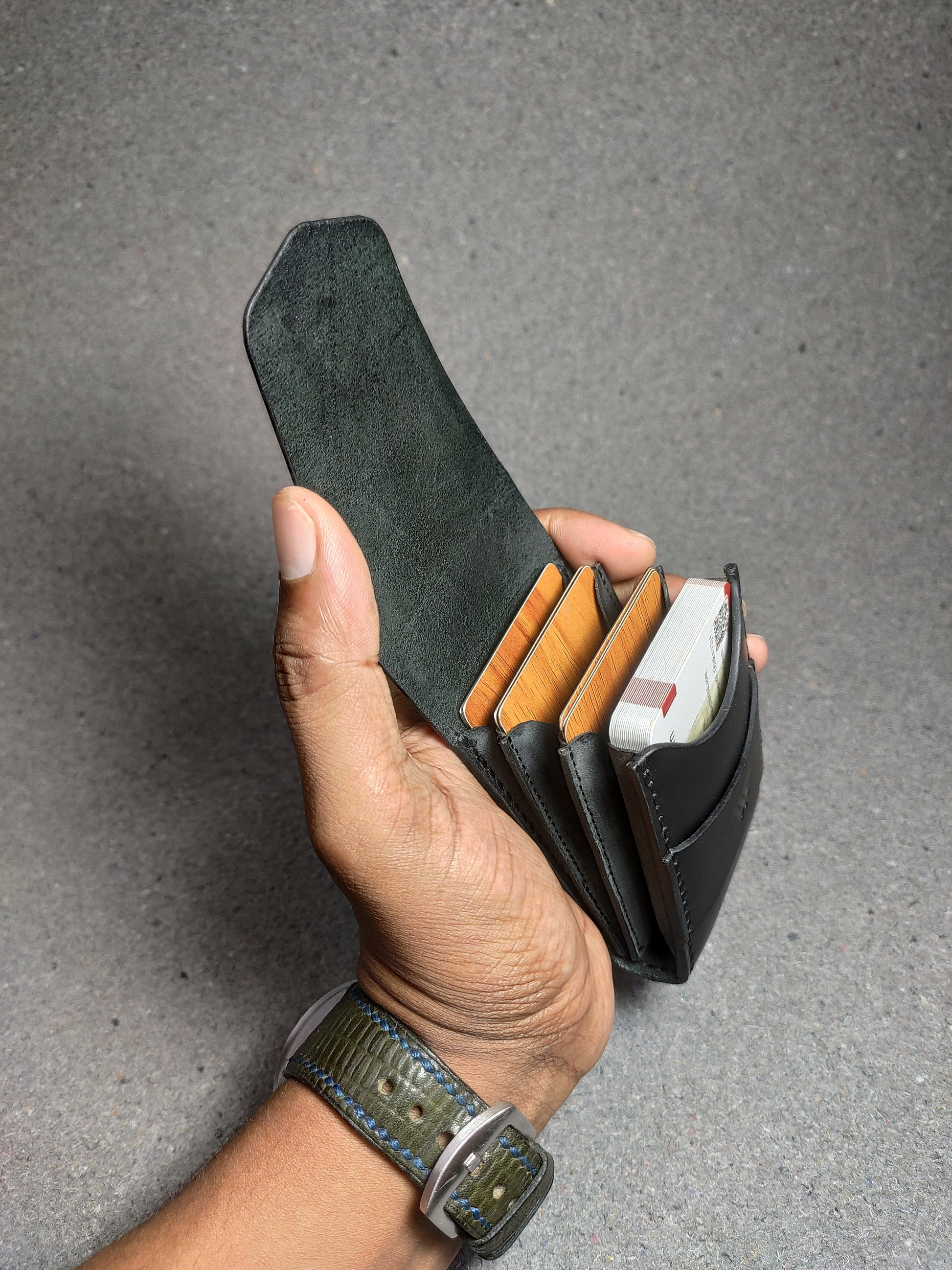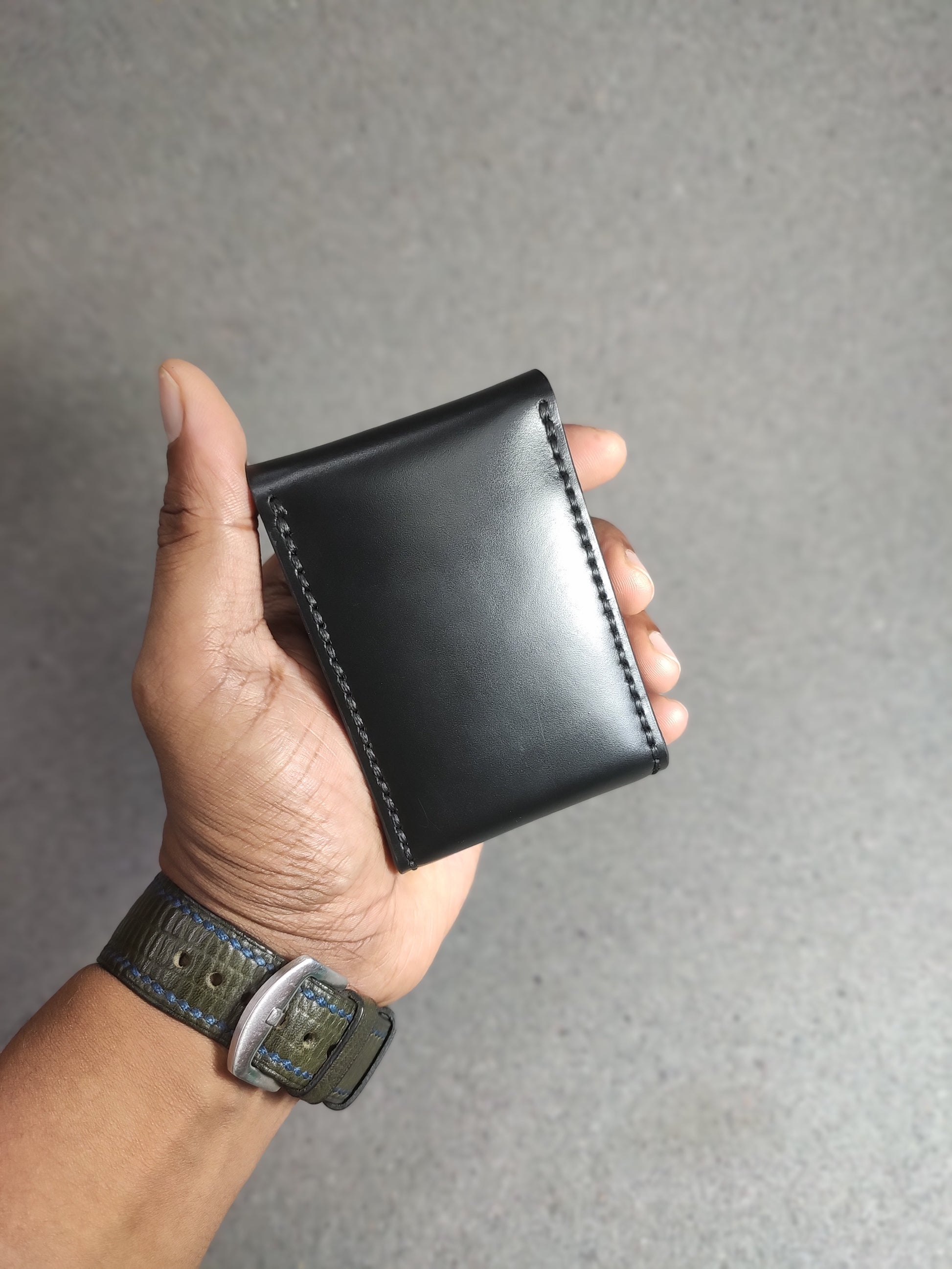 "Customize Your Wallet: Choose you preferred leather type, color, and thread options from our available stock"
