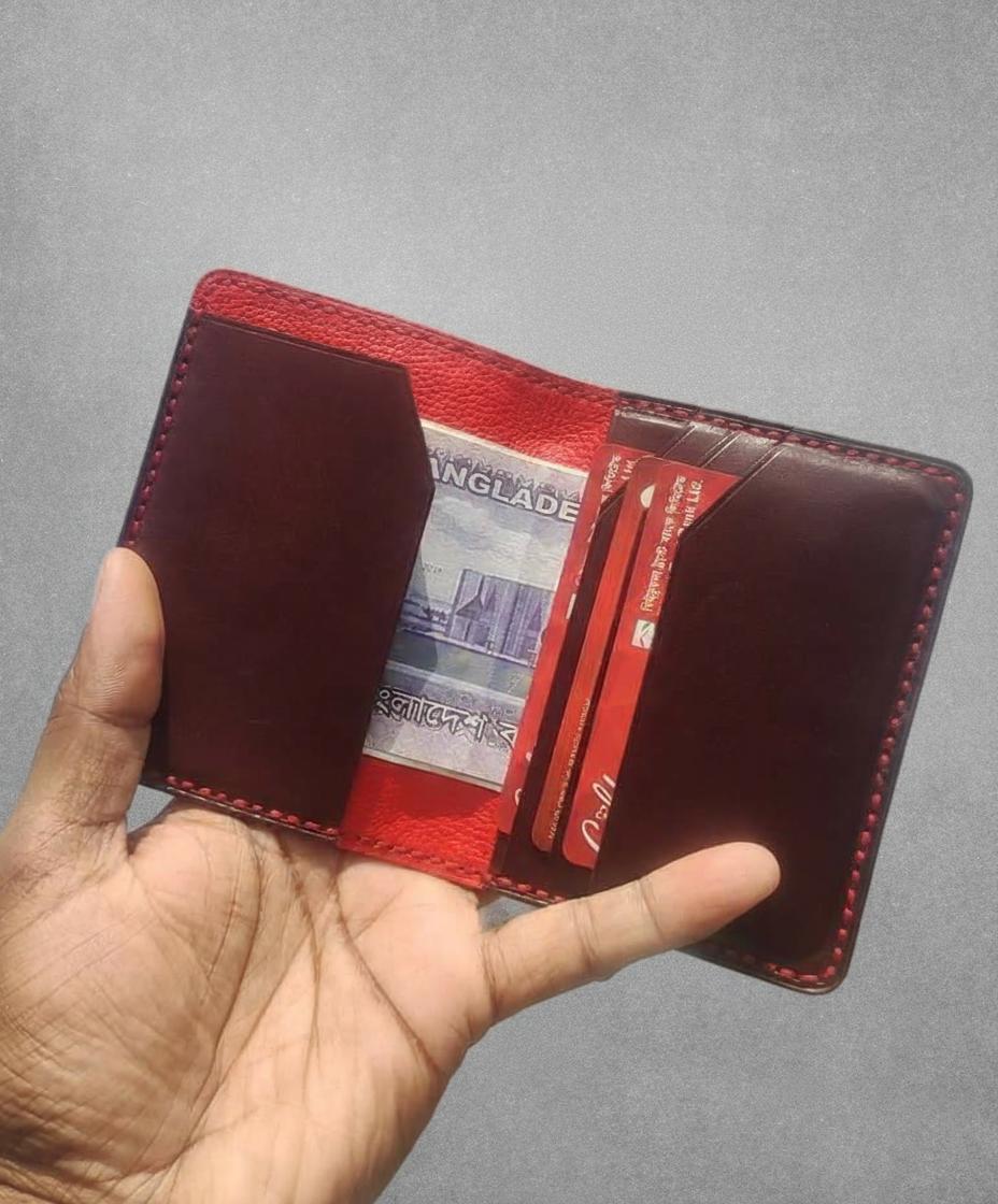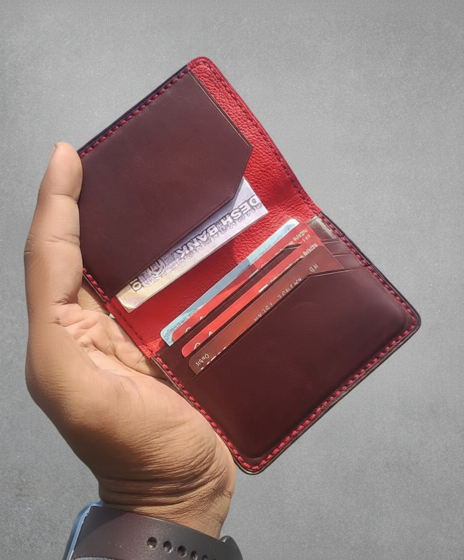 "Customize Your Wallet: Choose you preferred leather type, color, and thread options from our available stock"